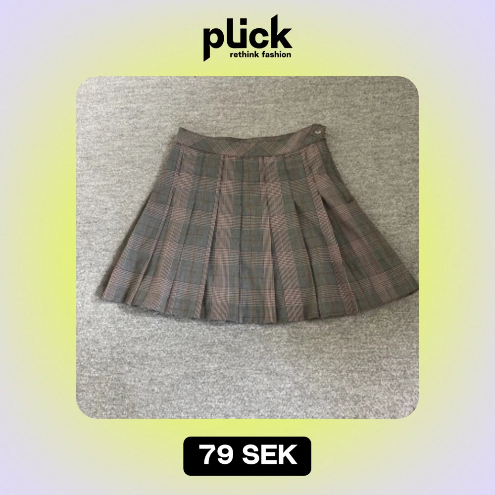 En rutig kjol från H&M tillverkad av 98% återvunnen polyester. Kjolen har ett rutigt mönster i grått, rött och beige med veckade detaljer och en knapp i midjan. Den är oanvänd och har lappen kvar