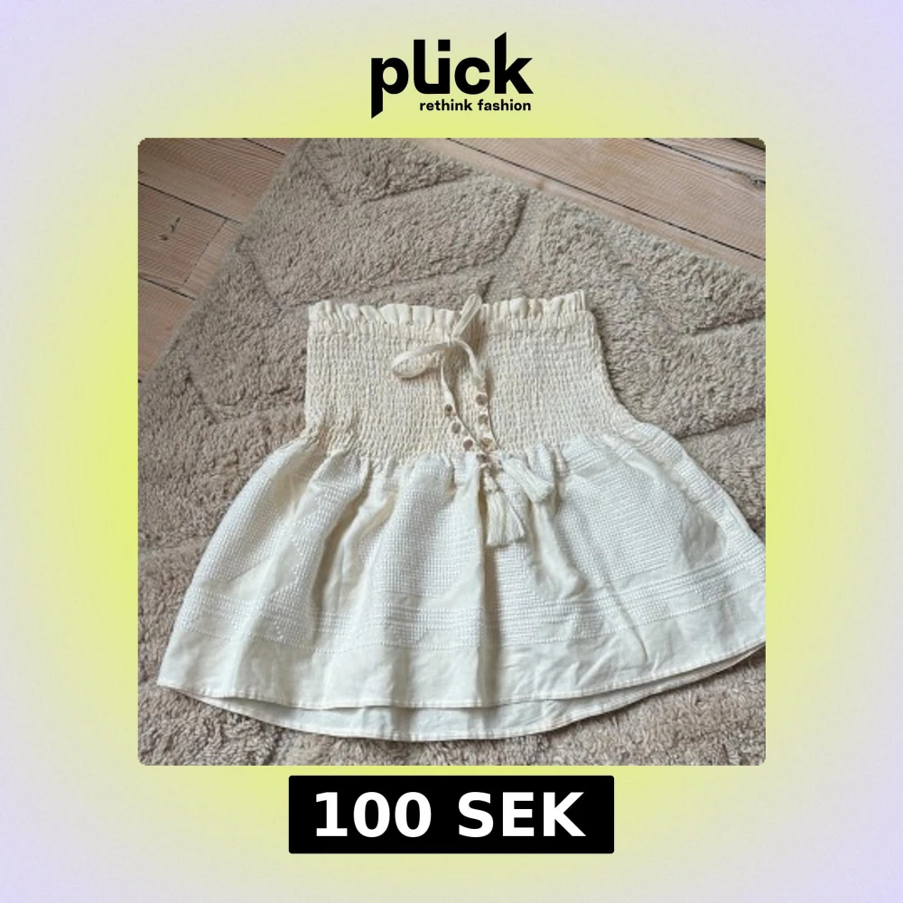 Charmig beige kjol från Zara med smockdetaljer i midjan och dekorativa knappar framtill. Kjolen har en kort längd och är tillverkad i ett lätt och luftigt material, perfekt för varmare dagar. Den har även en fin knytning med tofsar som ger en bohemisk touch.