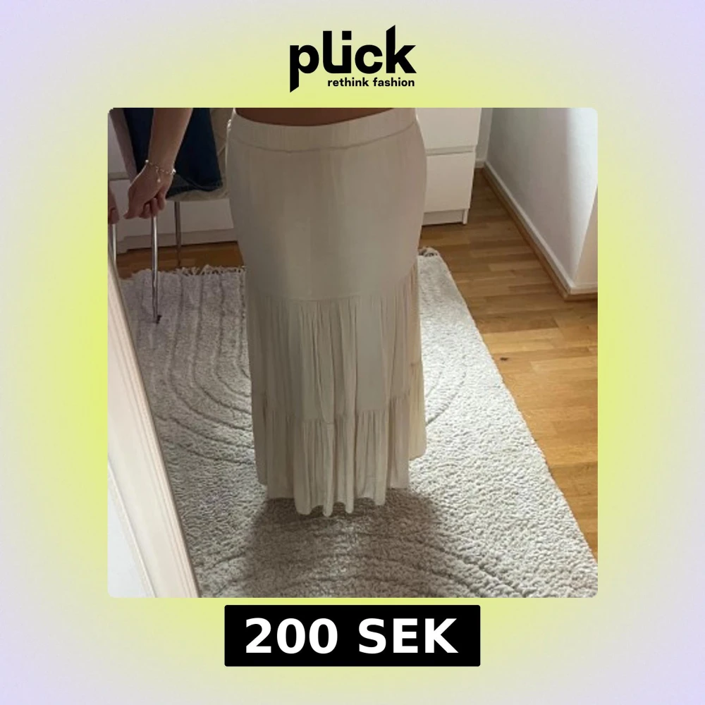 Supersnygg beige långkjol med volangdetaljer och elastisk midja.