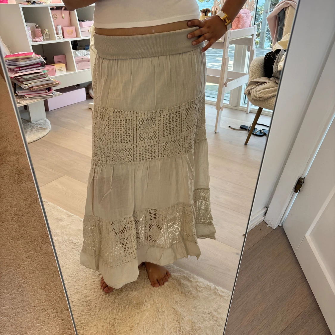 Säljer en super fin beige långkjol !! 💛💛 Står ingen storlek. Aldrig använd och är därför i nyskick! 💓💓