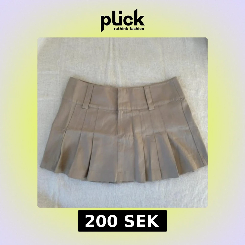 Snygg beige kortkjol med bred linning och plisserade veck. Kjolen har hällor för bälte och en klassisk, stilren look som passar perfekt till sneakers eller boots. Enkel att matcha med både stickade tröjor och crop tops.