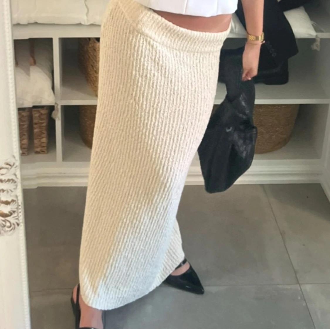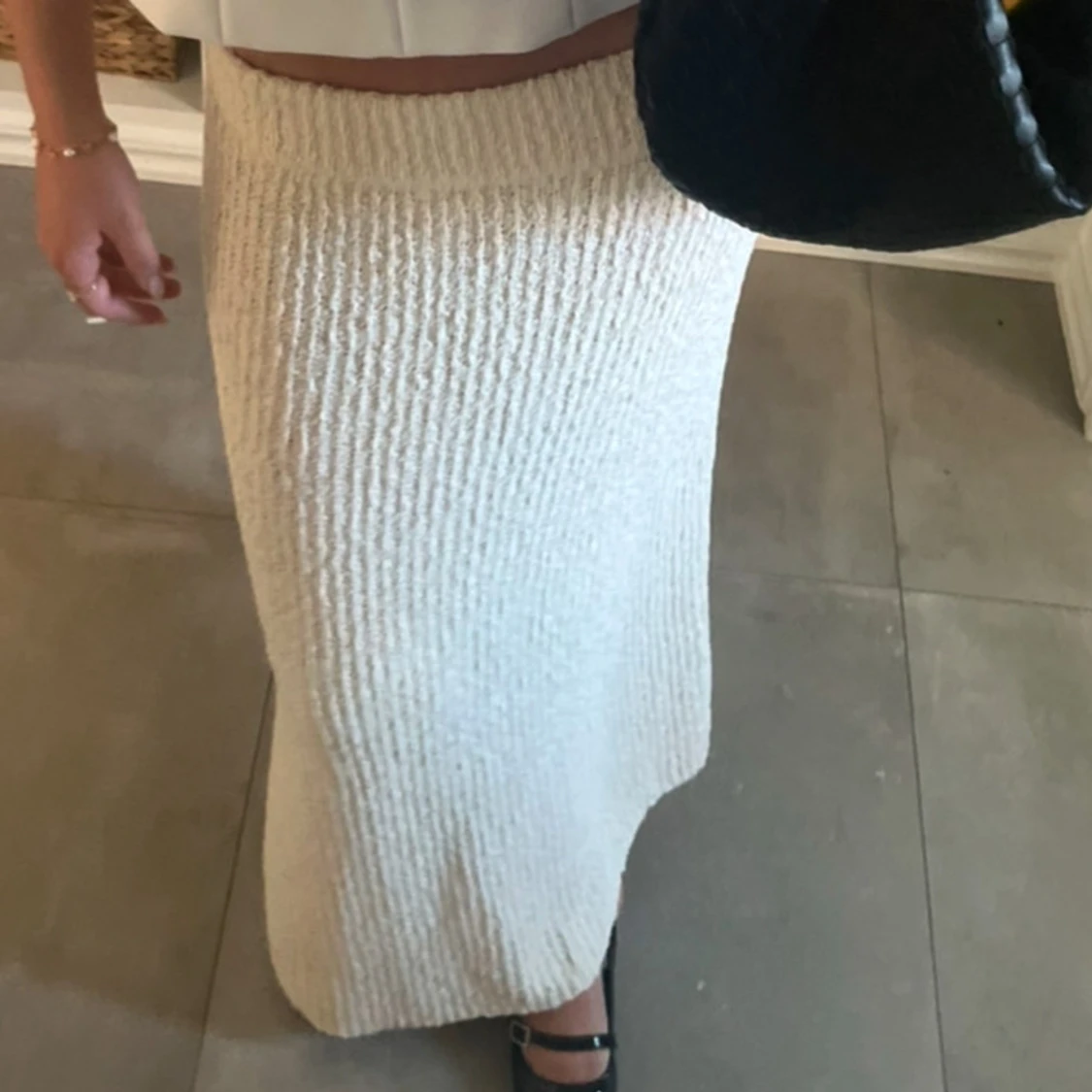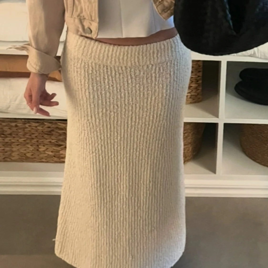 Beige stickad kjol, strl 34, använd fåtal ggr, slutsåld! 300kr