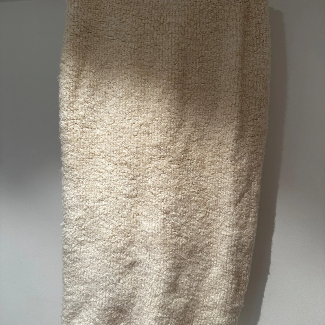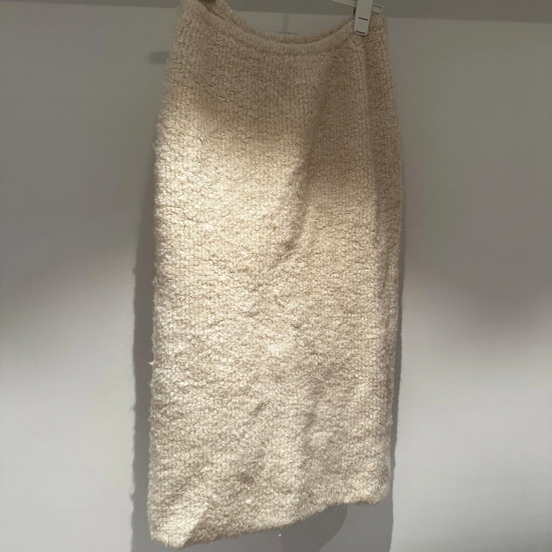 Mysig beige stickad kjol med en fluffig textur. Kjolen har en rak passform och är perfekt för kyligare dagar. Den neutrala färgen gör den lätt att matcha med olika toppar och accessoarer. Använd 1 gång