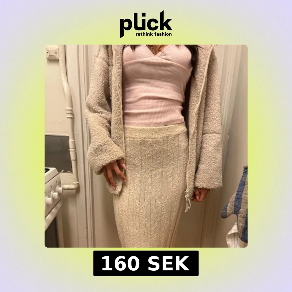 Säljer en beige/krämvit långkjol i stickat material med ribbad struktur och diskreta lodräta ränder. Perfekt till hösten! 💖Fraktar/möts upp i Solna. Kolla min profil för mer kläder! <3 Paketpris gäller!