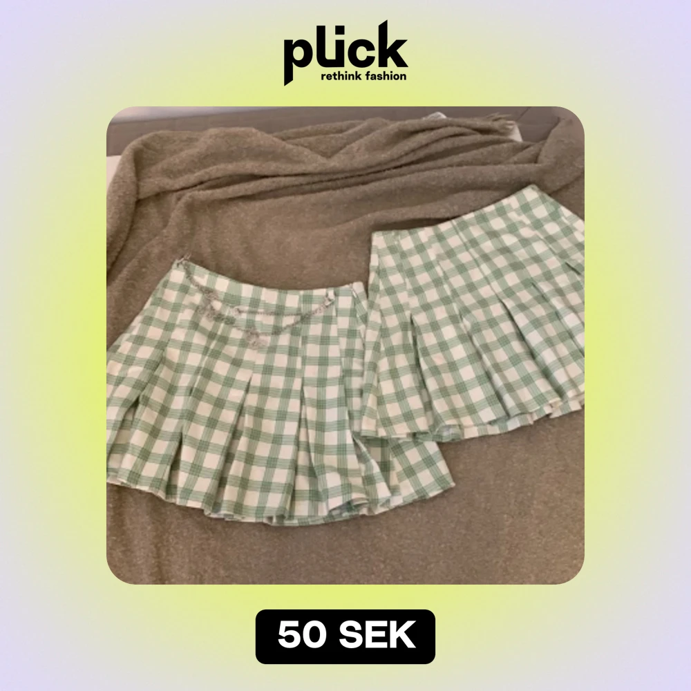 Två korta grön och vit rutiga kjolar från Bershka. Ena kjolen har ett dekorativt kedjebälte med fjärilar. Går att köpa ihop och separat. 1 för 50, 2 för 100kr