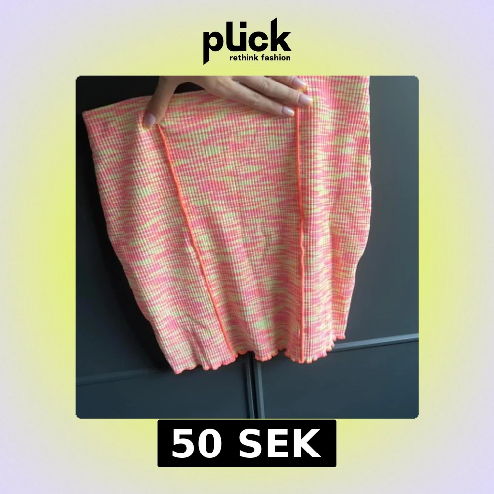 En kortkjol i ribbat material med ett färgstarkt mönster i rosa, gul och vit. Kjolen har en rak passform och är perfekt för dig som gillar att sticka ut med din stil.