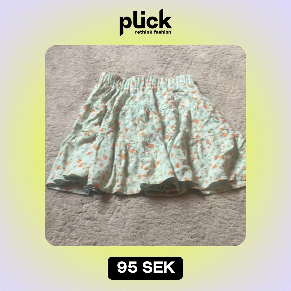 en få använd kjol i storlek xs. Kommer ej till användning på grund av för många kjolar. Jättefin till sommaren. turkos med orangea och lite gröna blommor. Kort kjol.