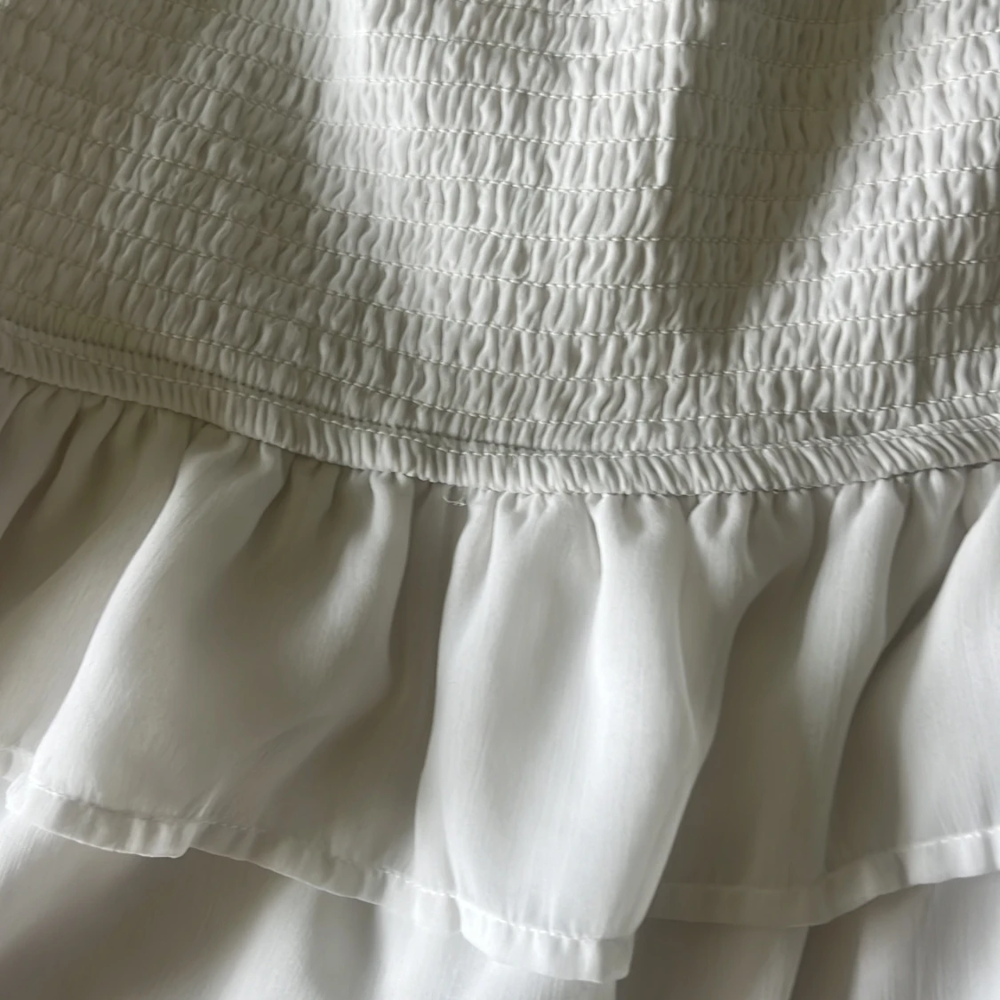 En gullig vit volangkjol som inte används längre Den har tre slitningar men inget man lägger märket till💕💕