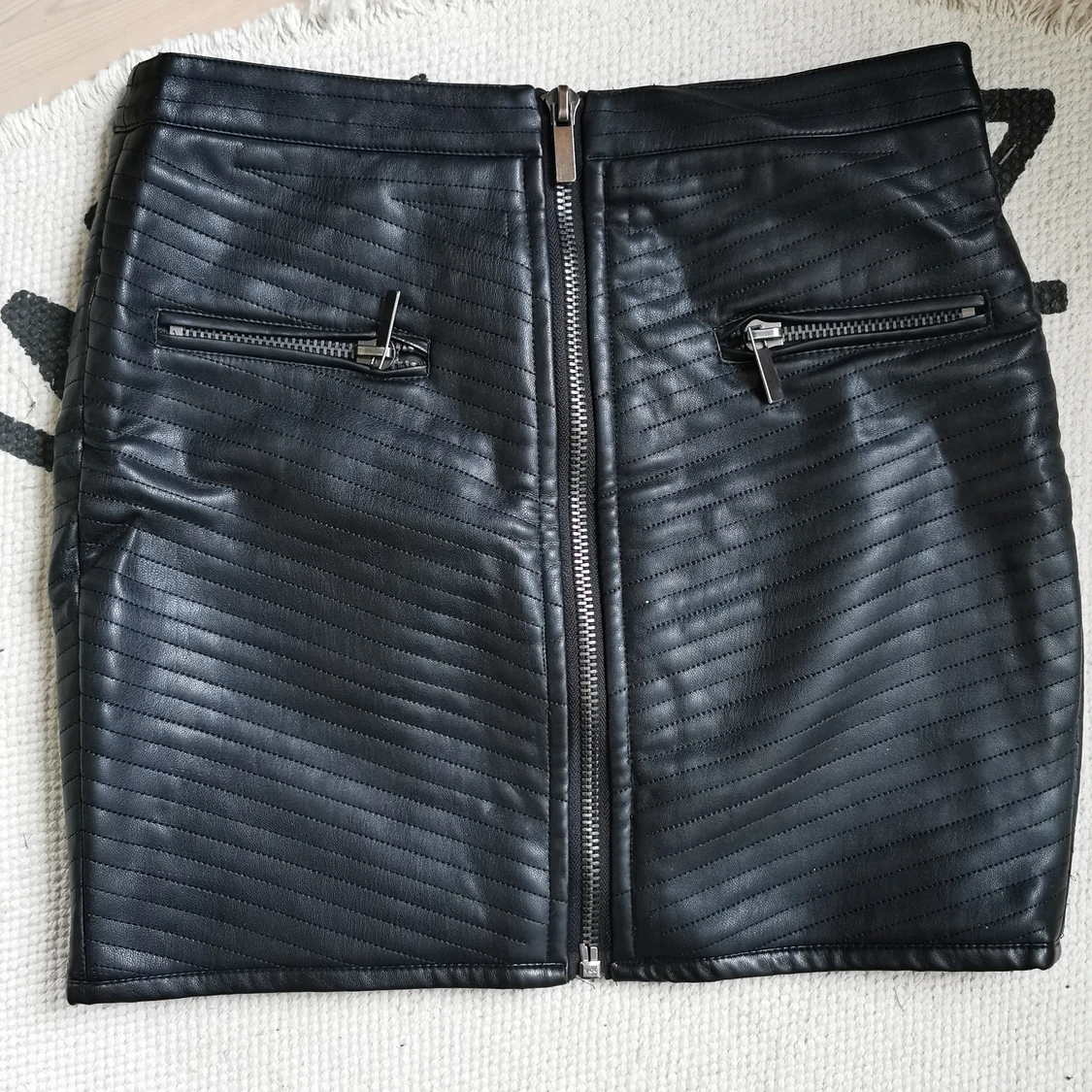 Svart kjol i skinnimitation från bik bok strl S. Fint använt skick. Köparen står för eventuell frakt, skickar med billigaste alternativet eller annat enligt önskemål ☺️