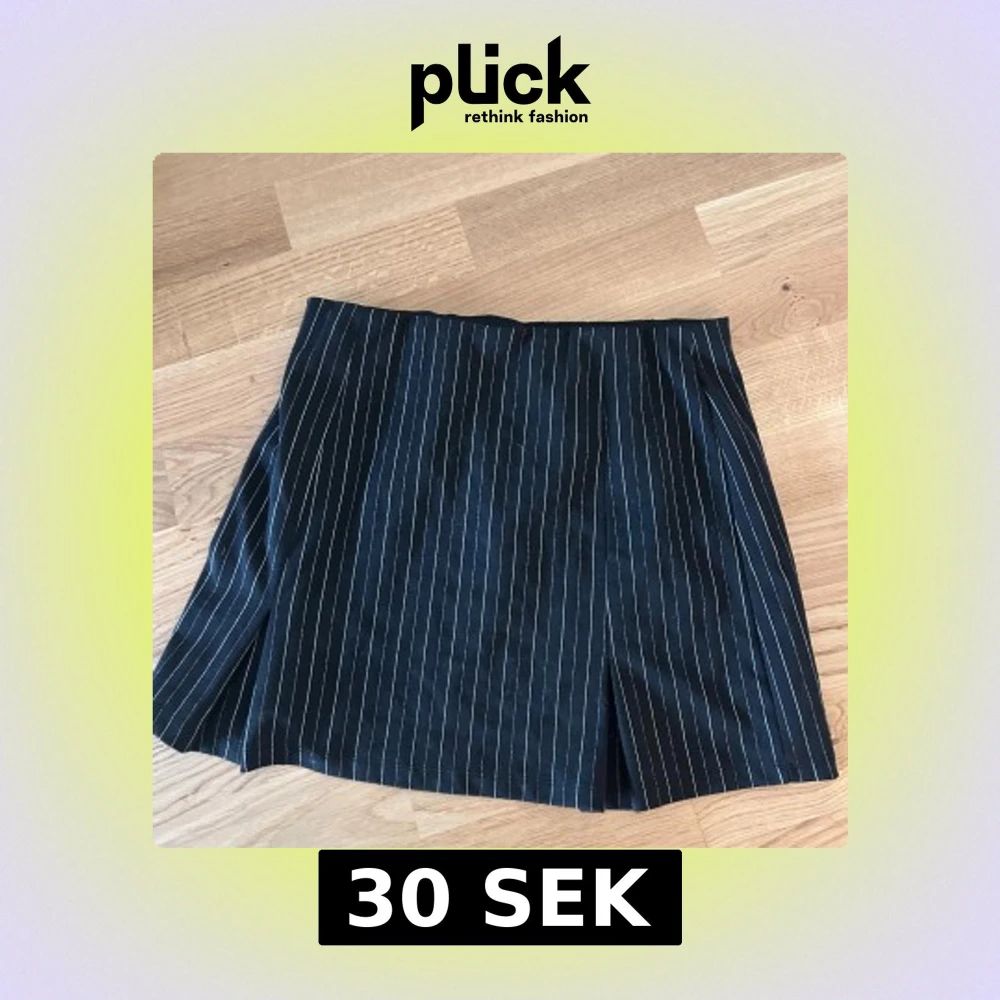 Snygg svart kortkjol med smala vita vertikala ränder. Kjolen har en rak passform och är tillverkad i ett mjukt tyg som känns bekvämt mot huden. Perfekt för dig som gillar en stilren och modern look med lite edge.