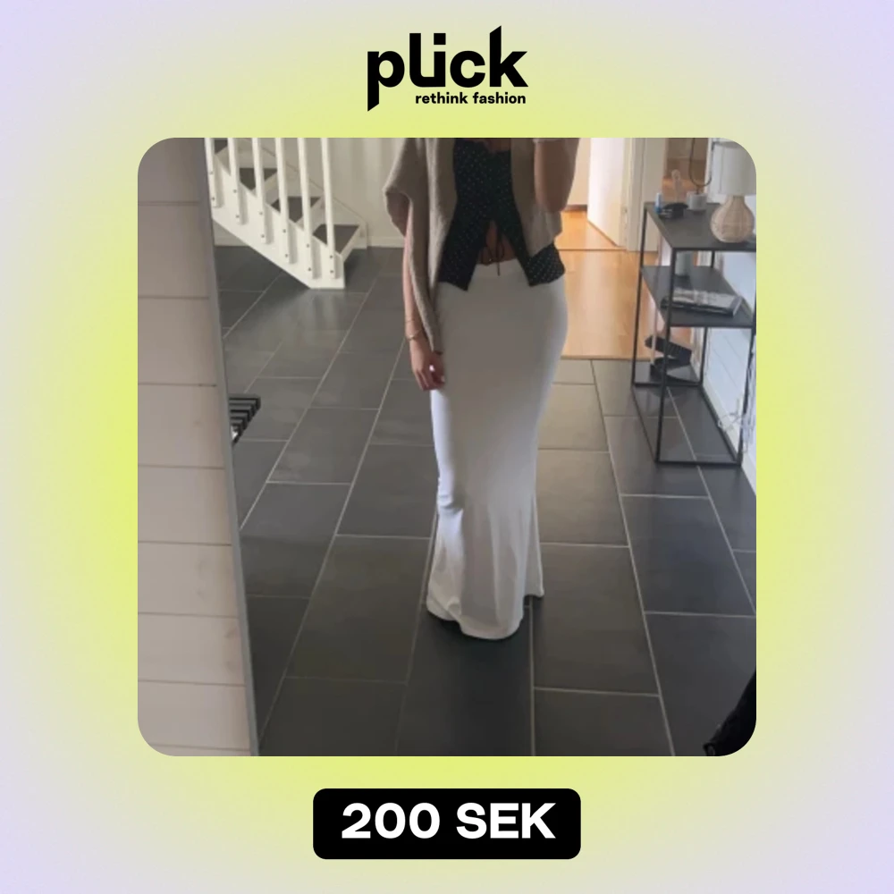 Aldrig använd vit långkjol från Bikbok i storlek xs. Inte genomskinlig då tyget är lite tjockare. Är 169 och den går ända ned till backen som man ser på bilden.