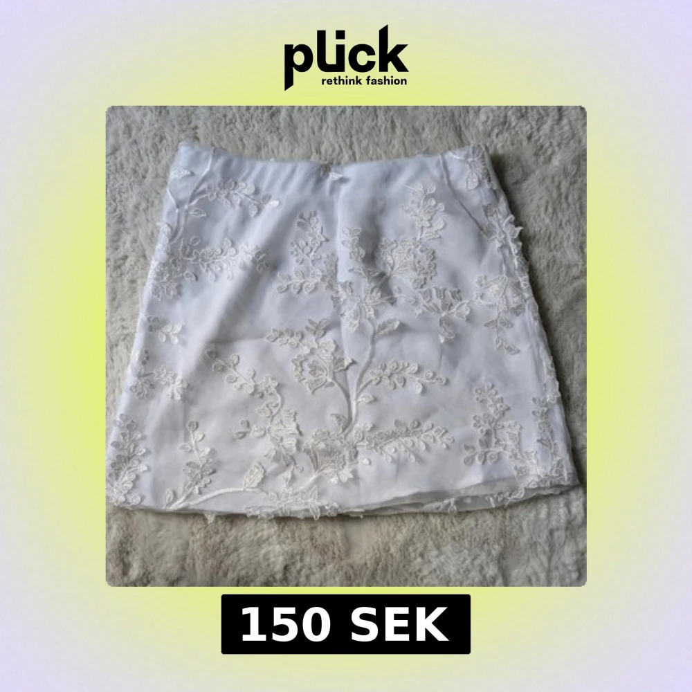 Superfin vit kortkjol från bikbok med broderade blommor och blad över hela tyget. Kjolen har en lätt glansig yta och känns riktigt fräsch och somrig. Perfekt för dig som gillar romantiska detaljer och vill sticka ut lite extra.