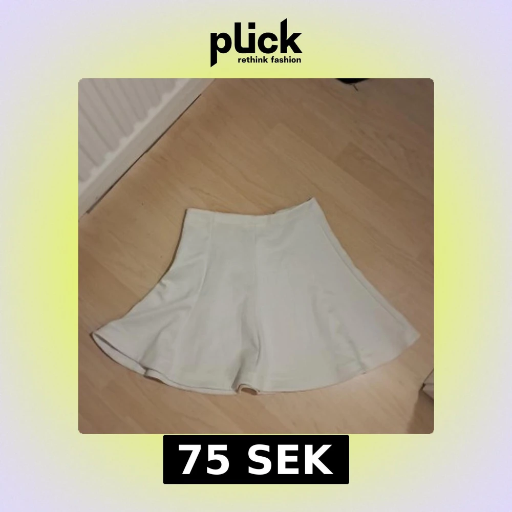 Supersöt vit kortkjol från Bik Bok i storlek XS. Kjolen har en utsvängd form och en snygg dragkedja baktill som detalj och när man tar på sig den. Perfekt för dig som gillar stilrena och enkla plagg med lite extra edge. Materialet känns mjukt och har ett lätt fall.