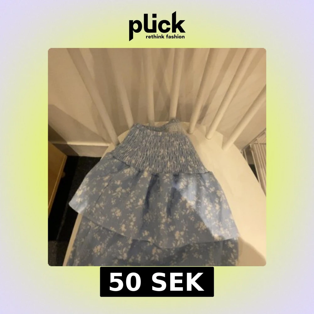 Charmig blå kjol med blommigt mönster och volangdetaljer. Perfekt för en somrig look med sin lätta och luftiga design.