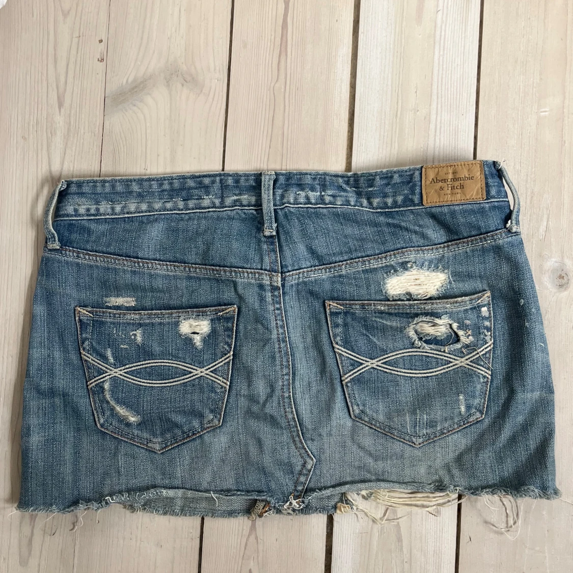Snygg blå supertrendig jeanskjol från Abercrombie & Fitch med slitna detaljer och fransar. Perfekt för sommaren och våren!💕Passar perfekt på mig som vanligtvis har s💞