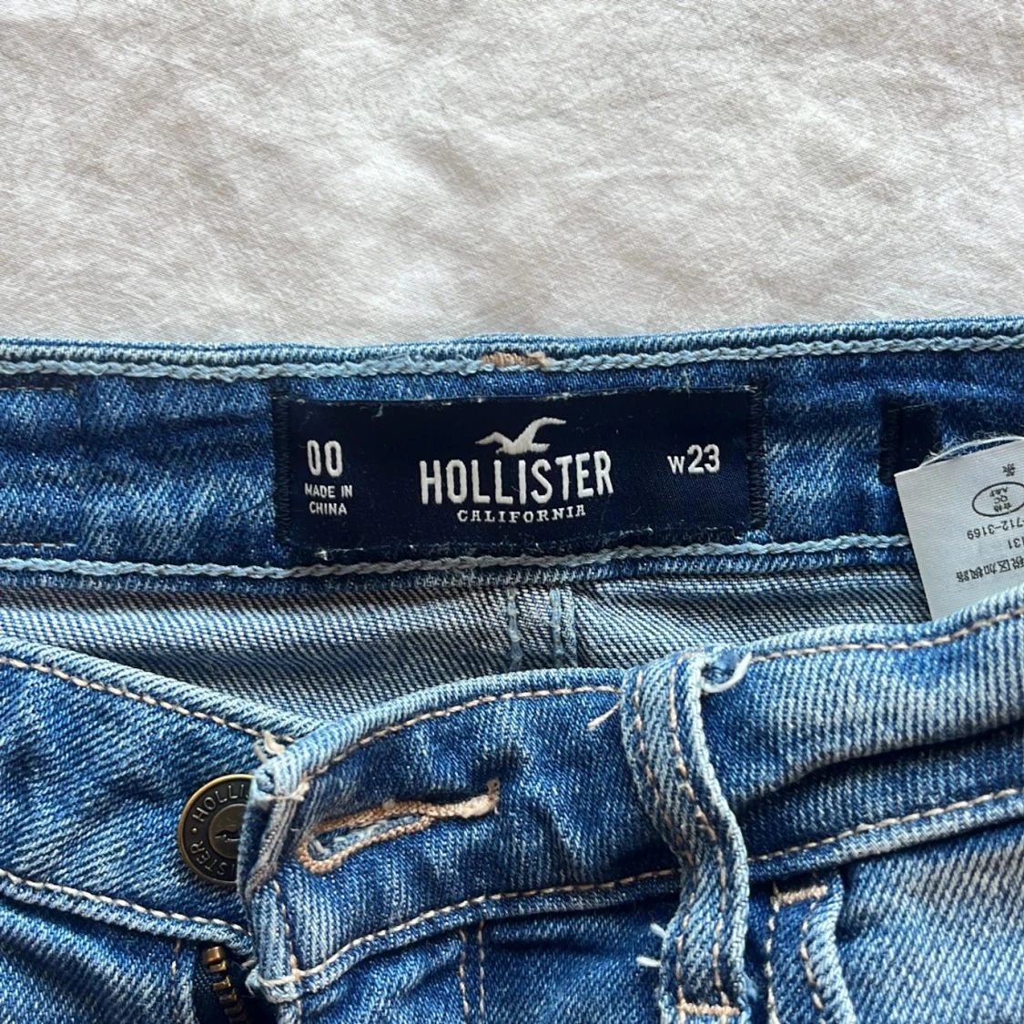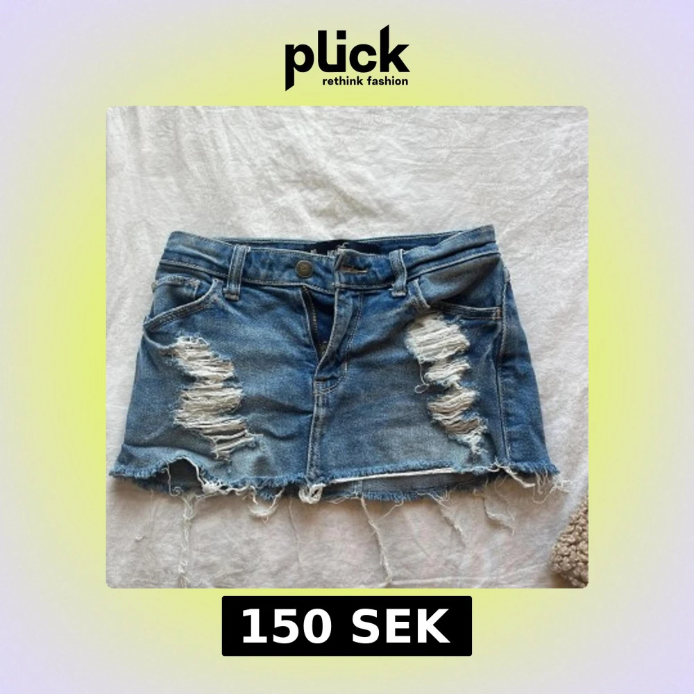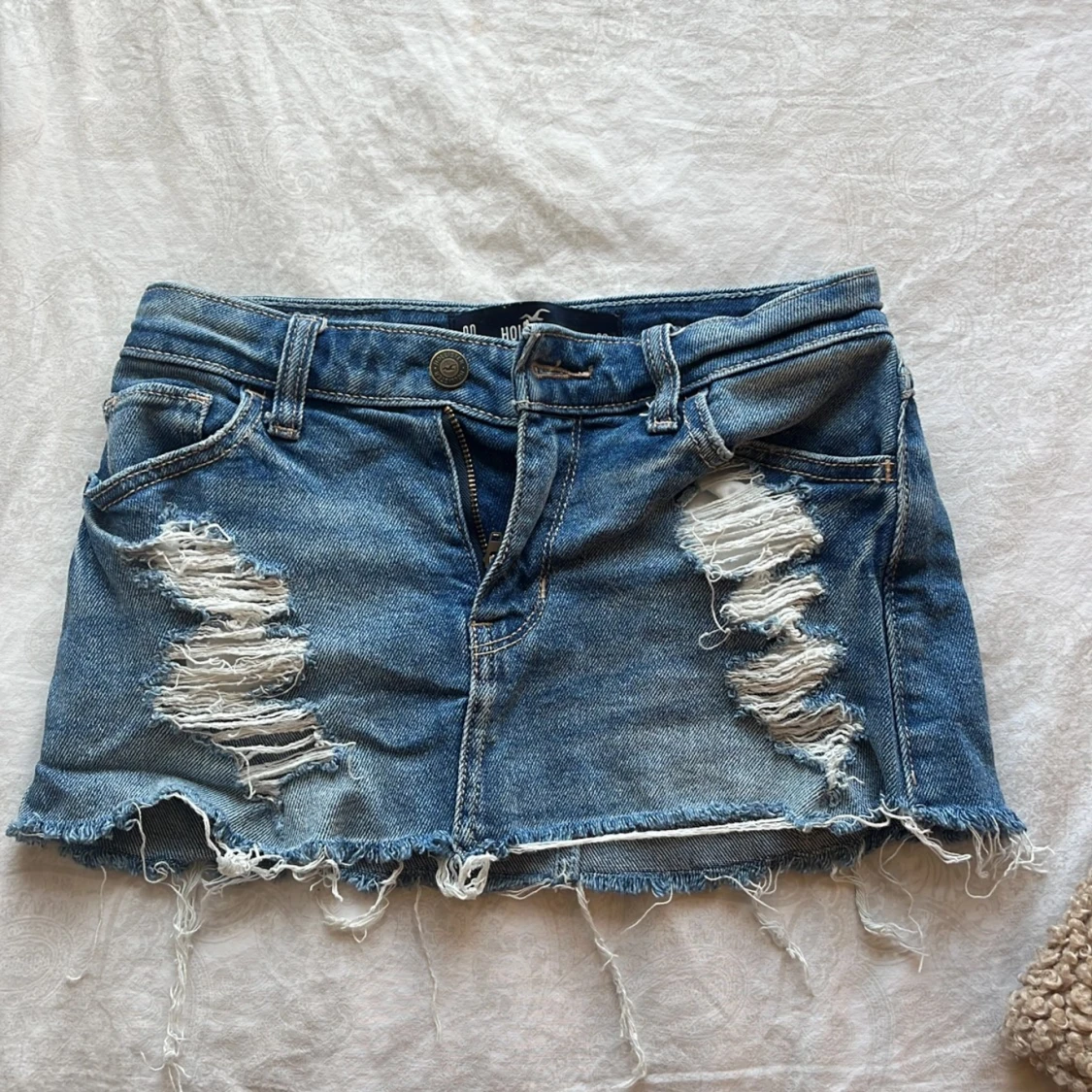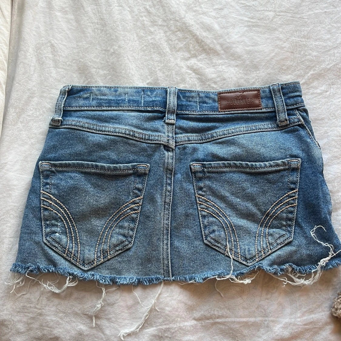 Säljer en blå jeanskjol från Hollister. Den är lågmidjad och har snygga slitningar 💞