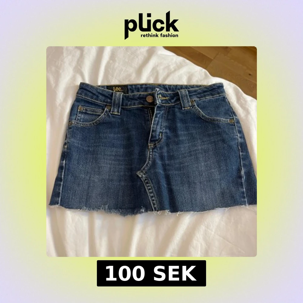 Snygg blå jeanskjol från Lee med klassisk femficksdesign och rå kant. Perfekt för en avslappnad stil. Kjolen har hällor för bälte och en knappstängning fram.