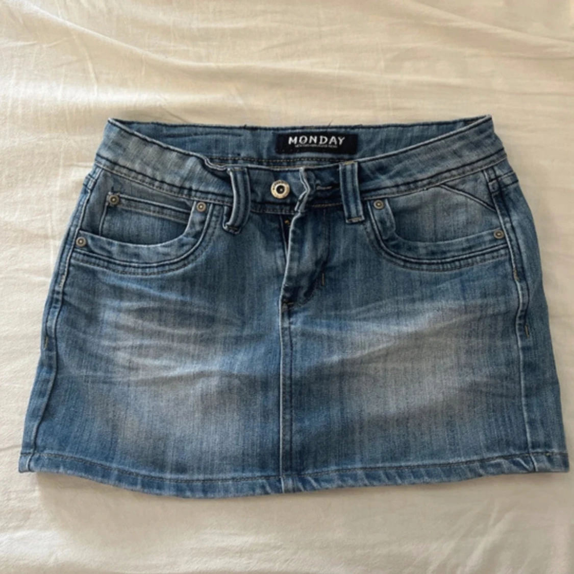 Super snygg blå lågmidjad jeans kjol i storlek 36/S! 💕 Midjemått tvärs över: 37cm