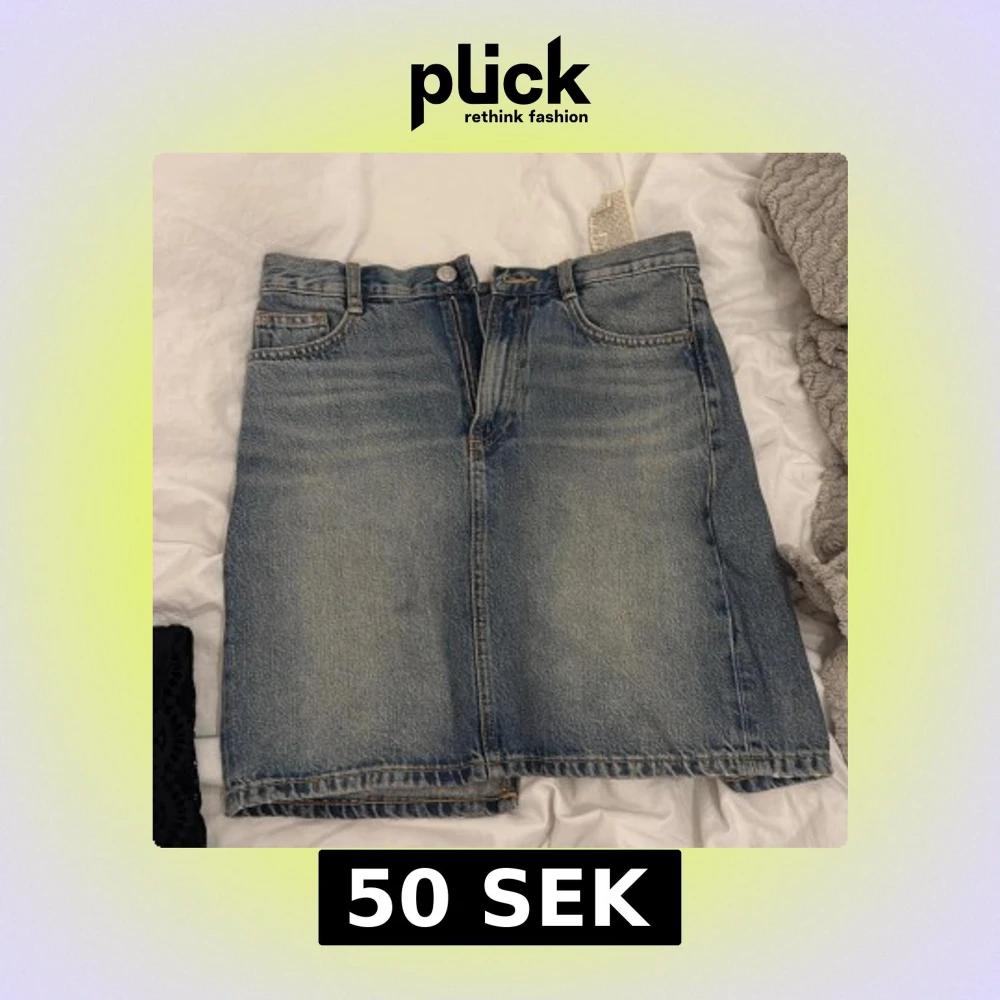 Snygg blå jeanskjol från Zara i klassisk femficksmodell. Kjolen är kort, har bälteshällor, knapp och dragkedja framtill samt en slits bak. Perfekt för dig som gillar en enkel och tidlös denimlook.