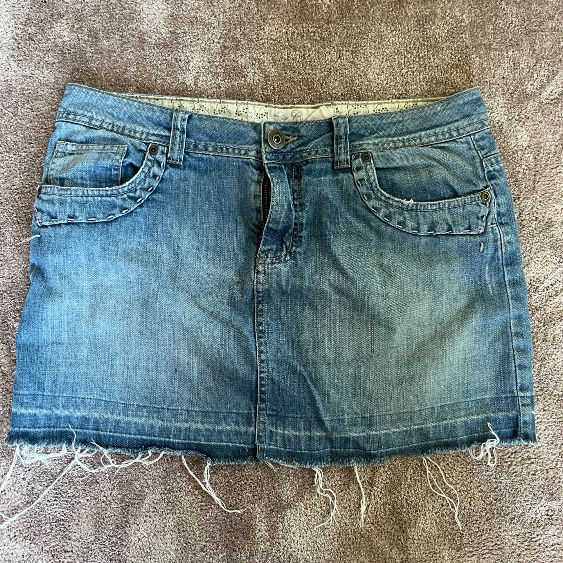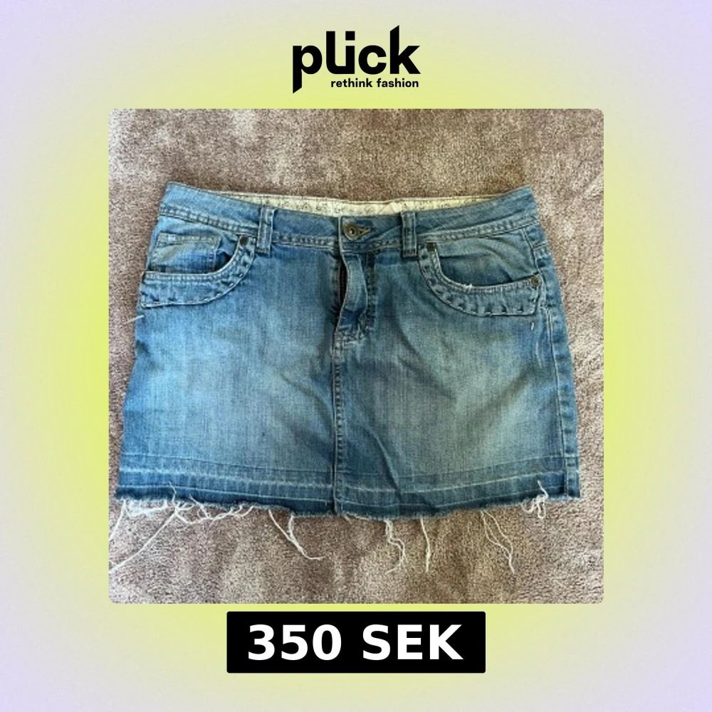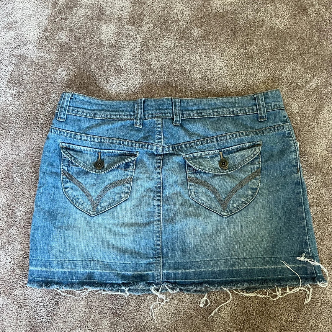 Så fin blå jeanskjol🩵🩵storlek 12 står det i den men skulle säga att den sitter som en M