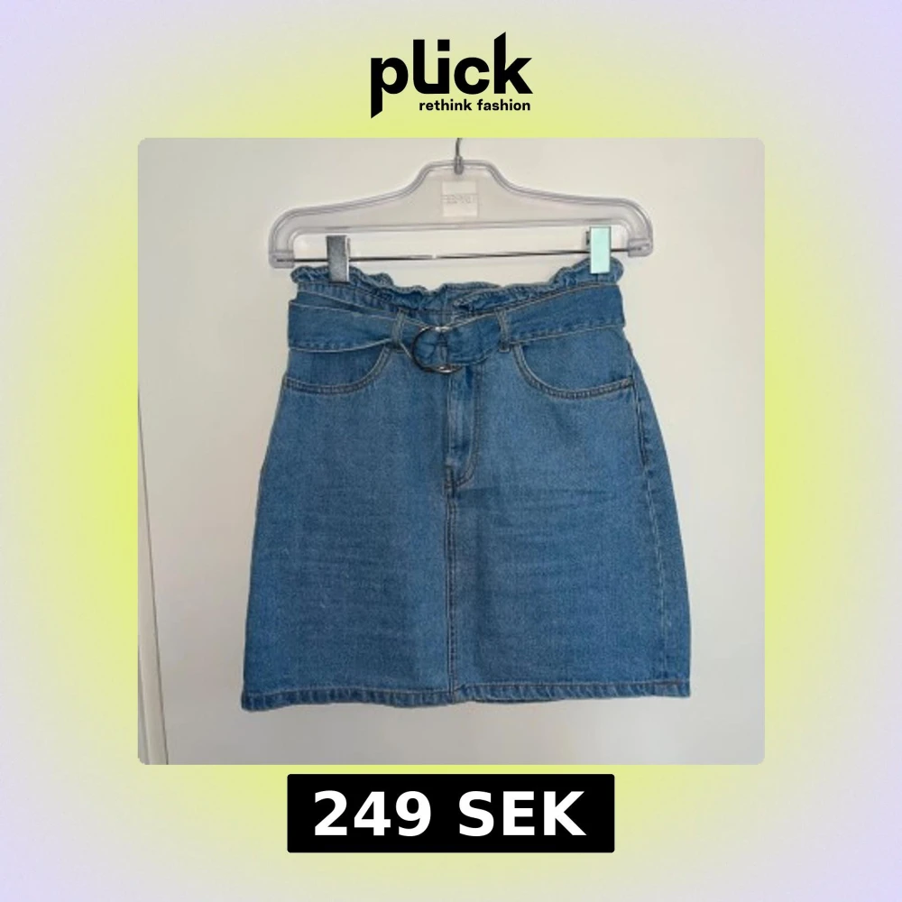 En somrig blå denimkjol från Divided By H&M med hög midja och tillhörande bälte med metallspänne. Kjolen har två framfickor och två bakfickor! Perfekt för sommaren! 🩵