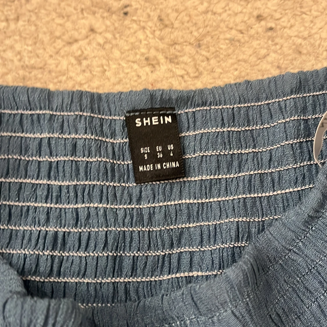 Snygg blå kortkjol från Shein med volanger. Perfekt för en somrig look. Kjolen har en elastisk midja för extra komfort och stil.