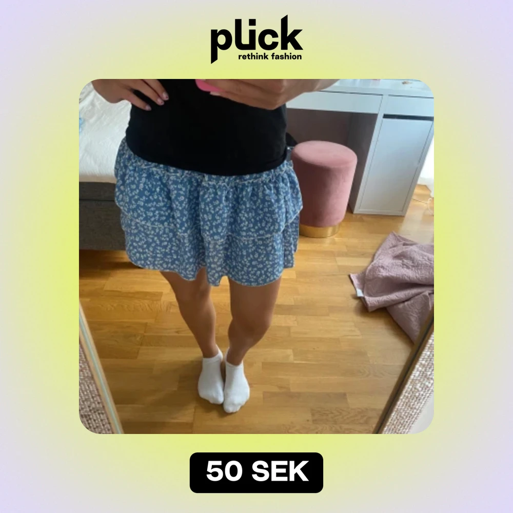 Här är en blå kjol med blommor på. Jättefin nu till sommaren. Den här är köpt på shein för några år sedan och knappt använd. Storlek S. Pris kan diskuteras