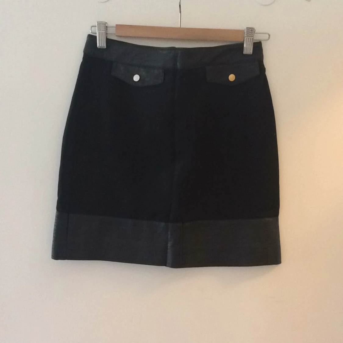 Kort svart kjol med skin (fake) detaljer