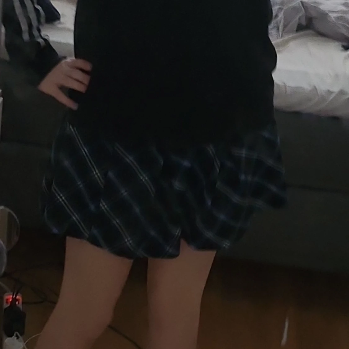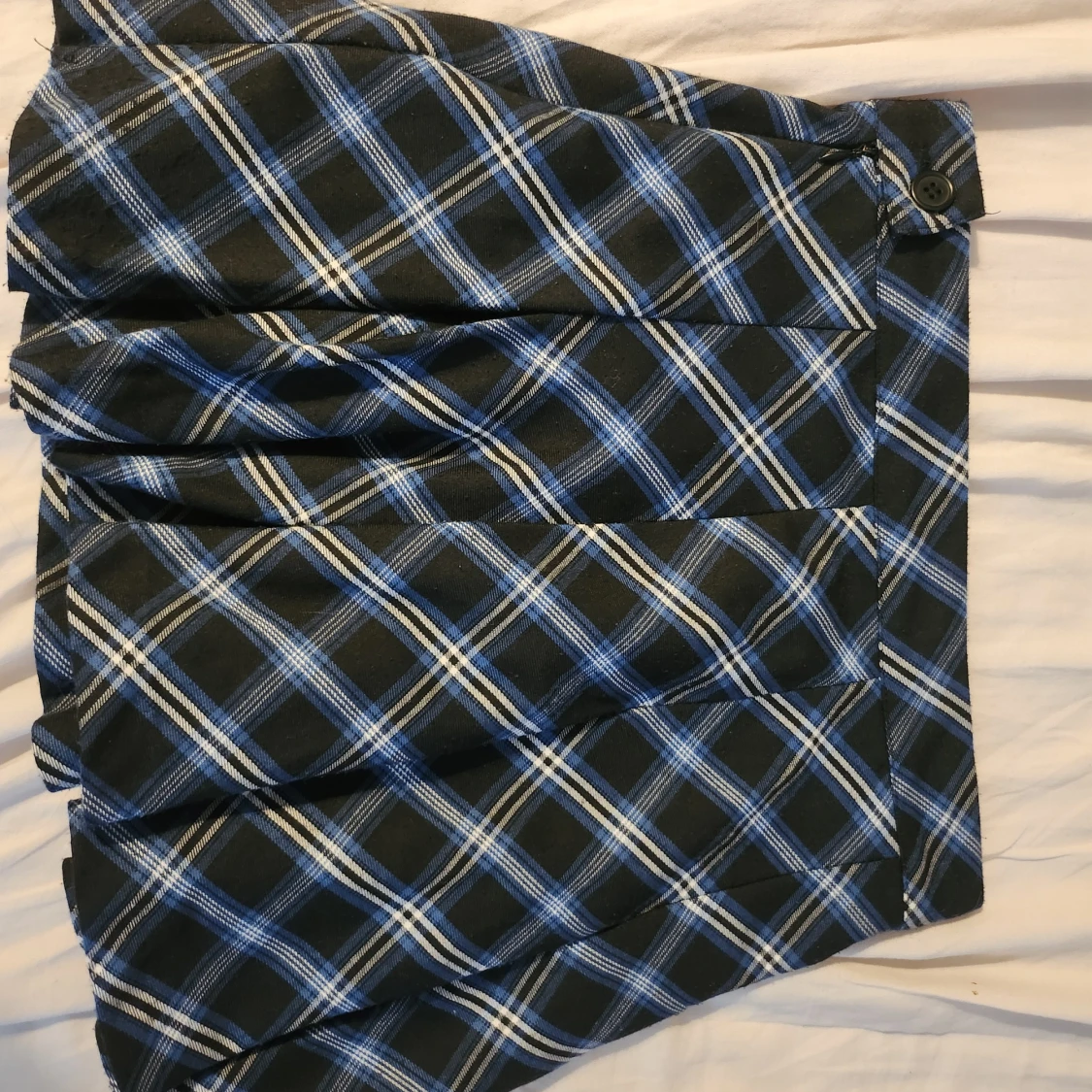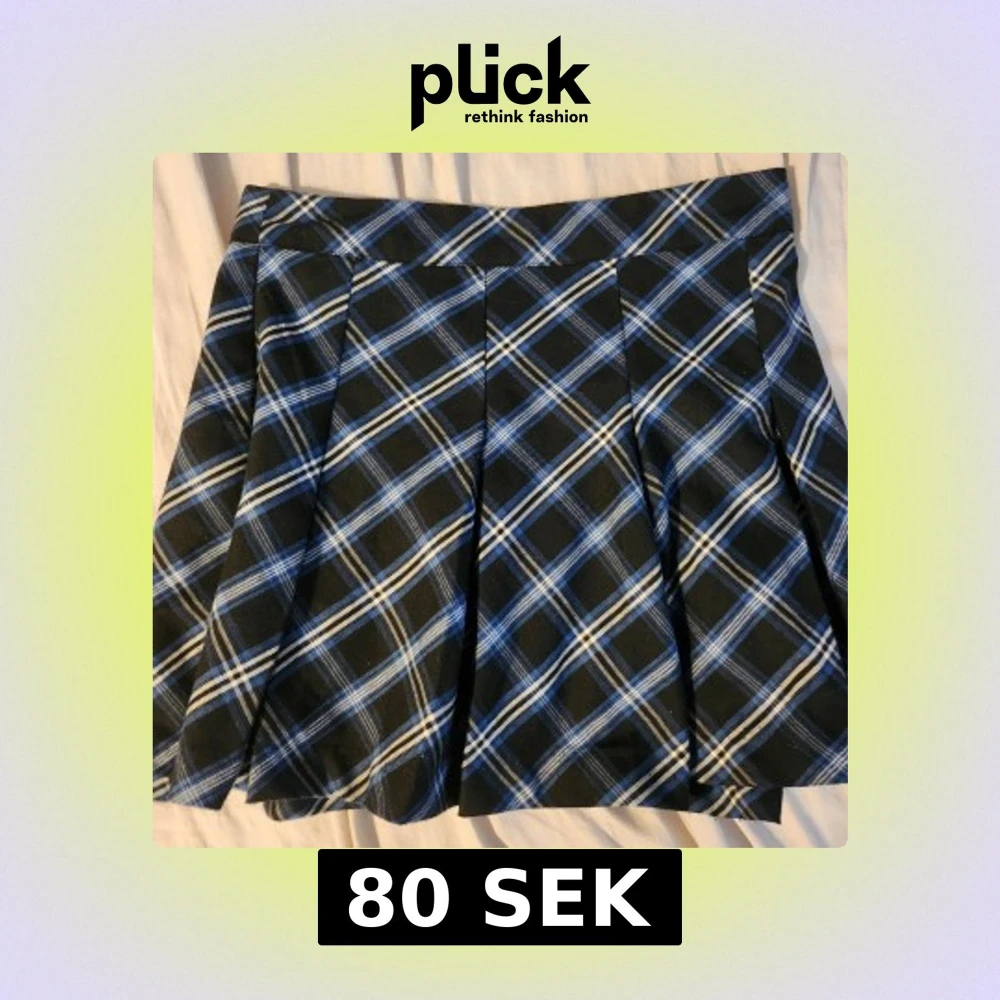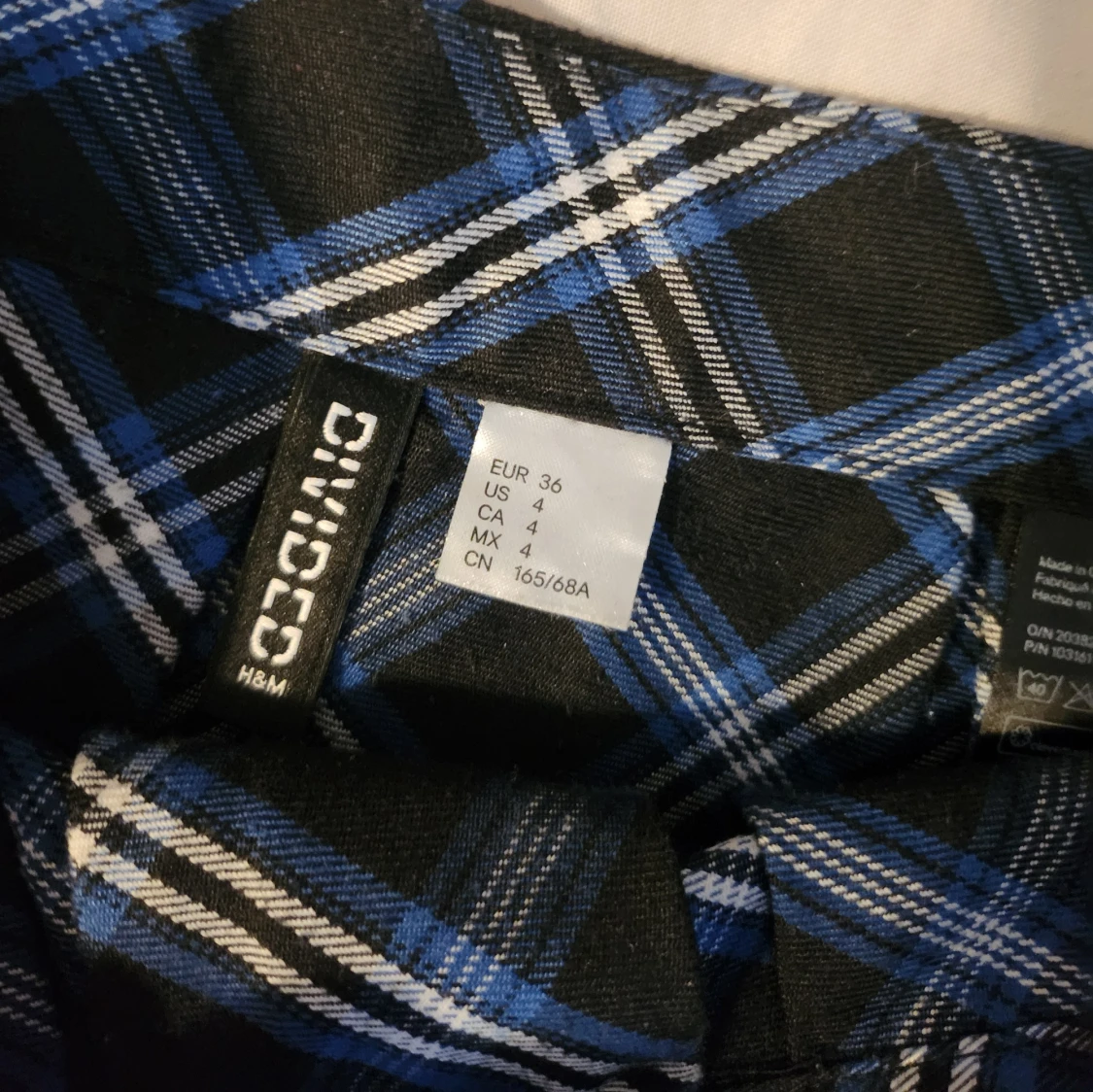 Supersnygg kort kjol i blått, svart och vitt rutigt mönster från H&M Divided. Kjolen har bred linning, veckad design och stängs med knapp och dragkedja i sidan. Perfekt för en cool och trendig look.