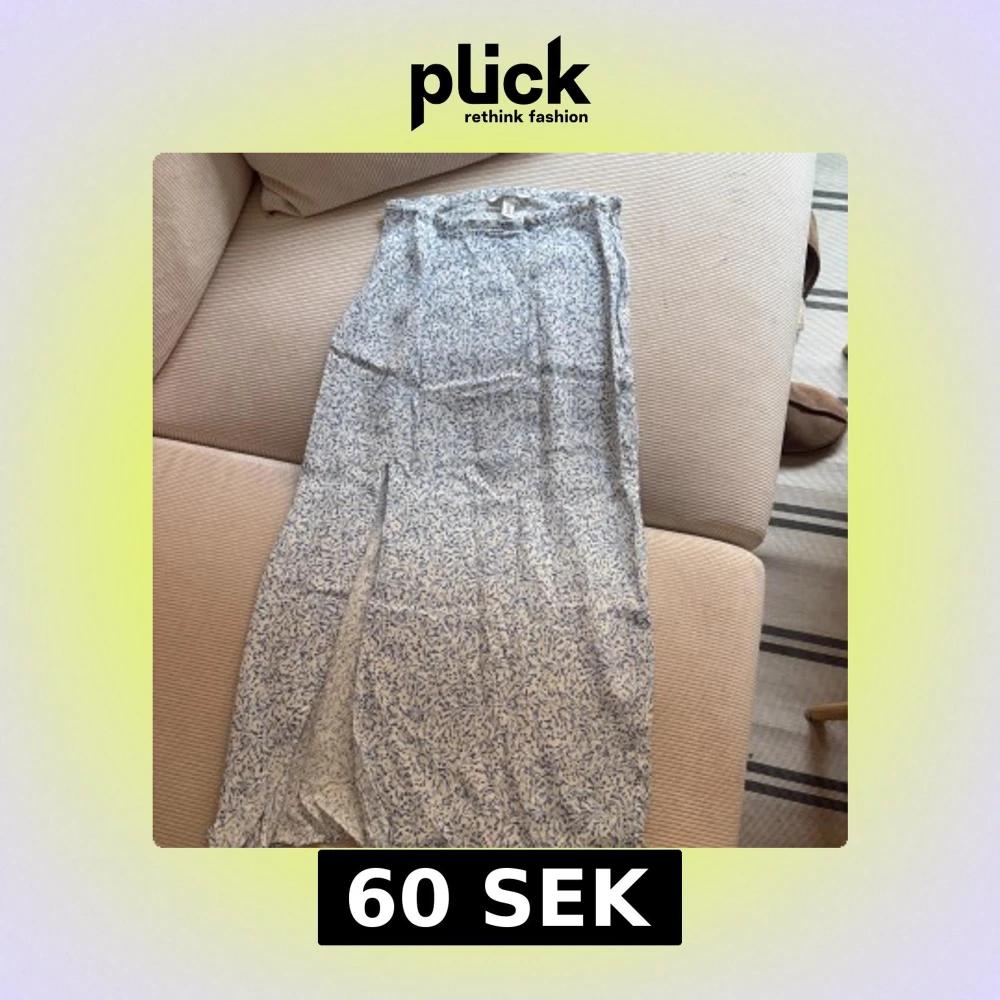 Säljer en långkjol från H&M i vitt tyg med blått blommigt mönster. Kjolen har rak passform med slits.