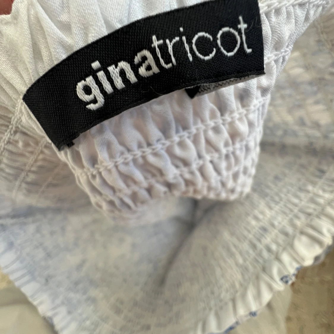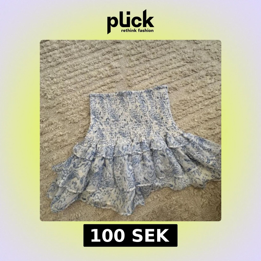 Säljer en söt blåvit kjol från Gina Tricot med volangdetaljer. Kjolen har ett blommigt mönster och är perfekt för sommardagar. Den har en elastisk midja för en bekväm passform.