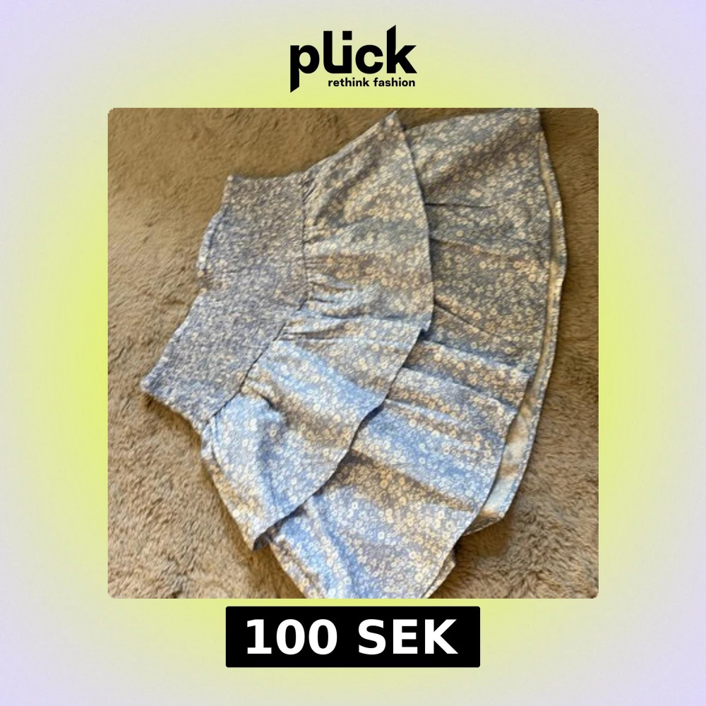 Supersöt blå kortkjol från Gina Tricot med vita små blommor och volangdetaljer. Kjolen har bred smock i midjan för en bekväm passform och är perfekt för en fräsch och somrig look.