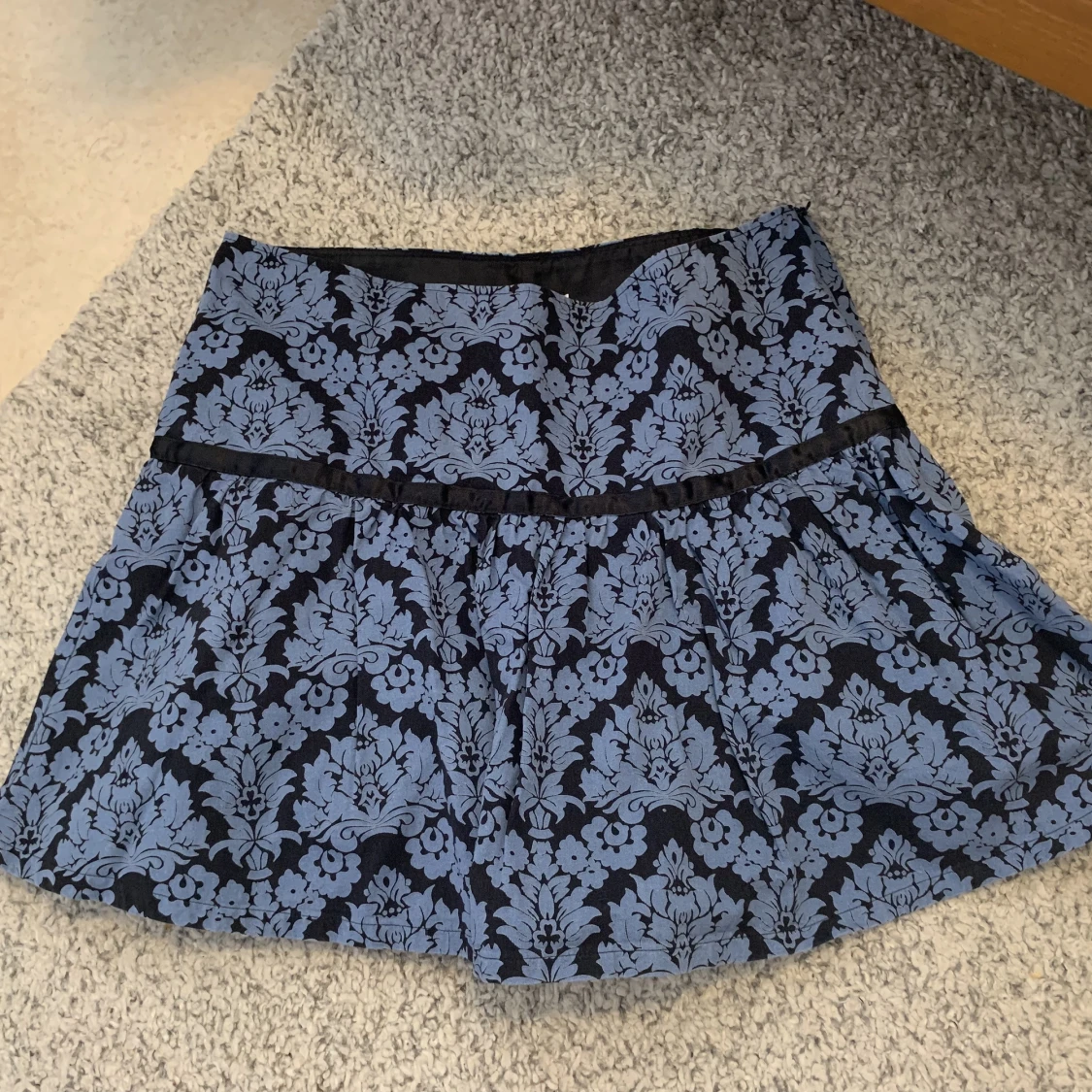 Blommig kort kjol i storlek 42 från zoul. Den har en svart innerkjol inuti. Den knäppa upp med en dragkedja i sidan.