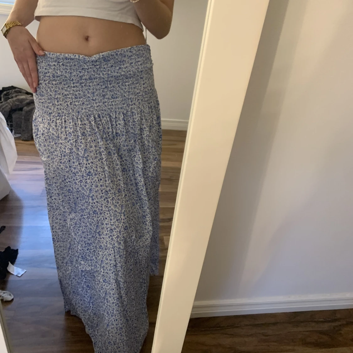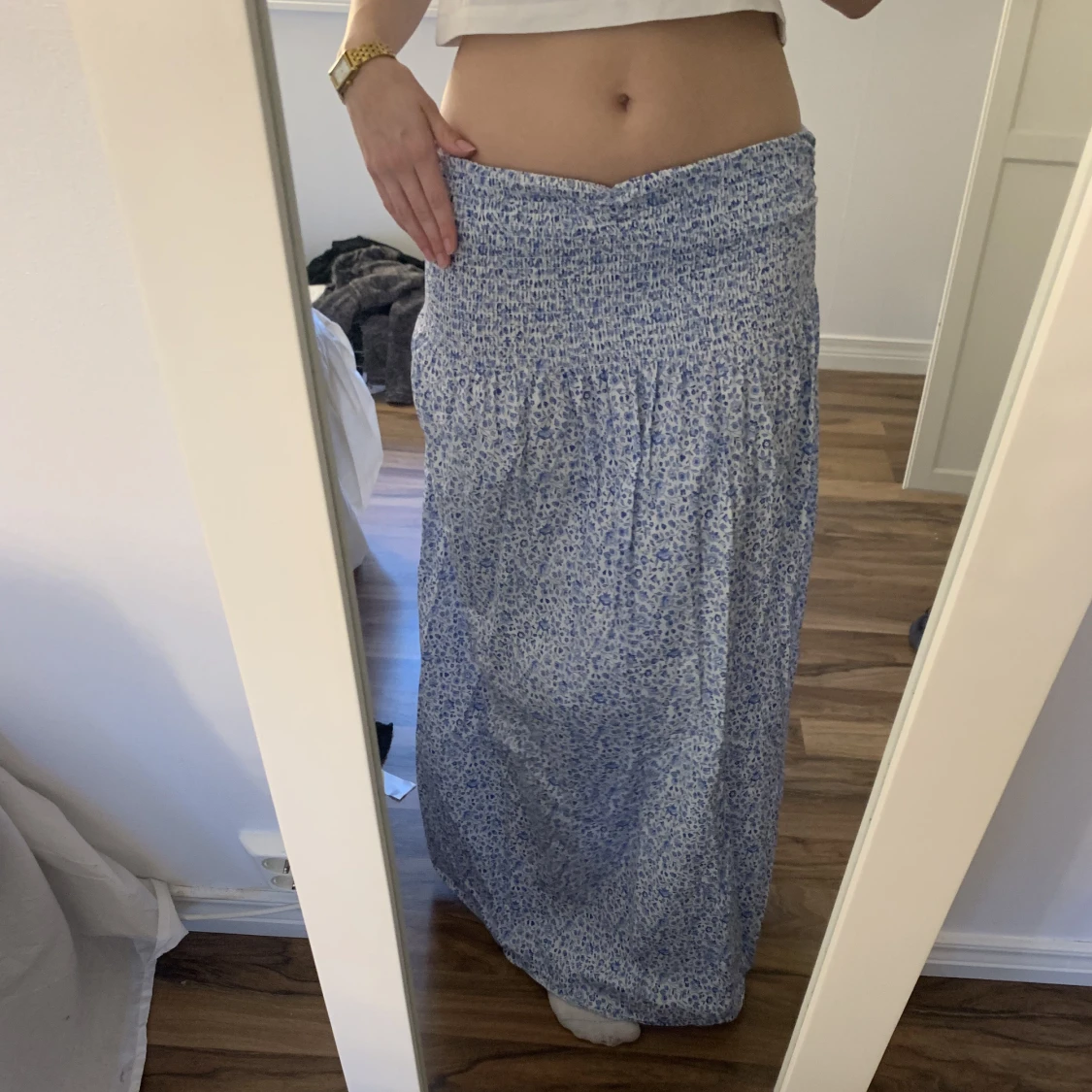Klänning med blommor som även går att ha som långkjol. Aldrig använd 100 kr + frakt💕