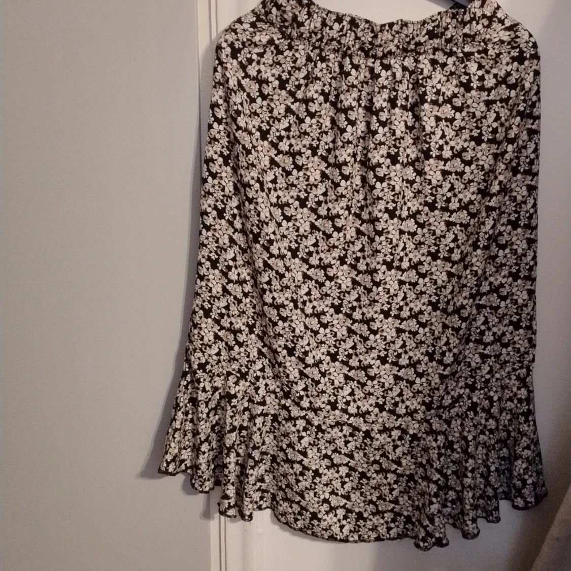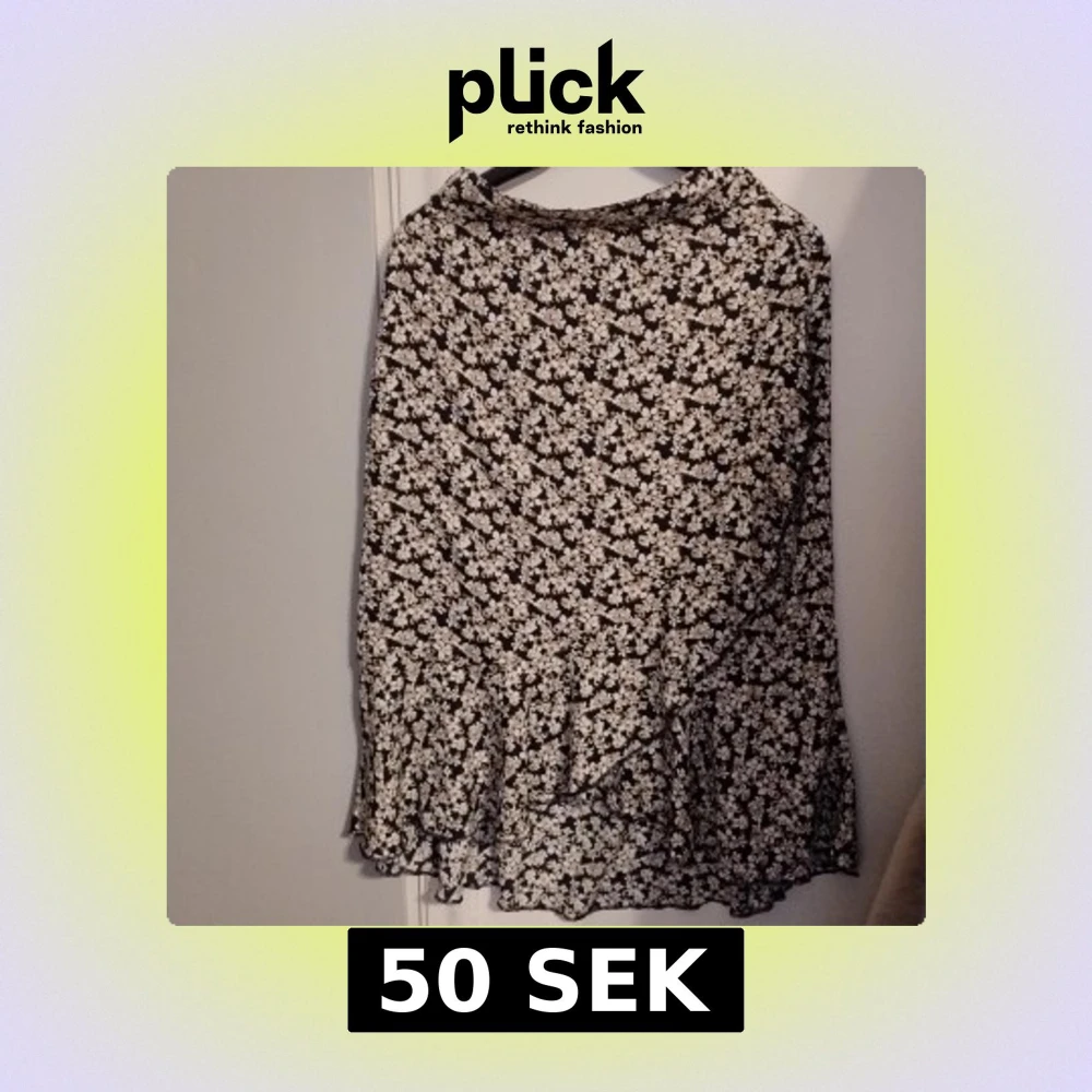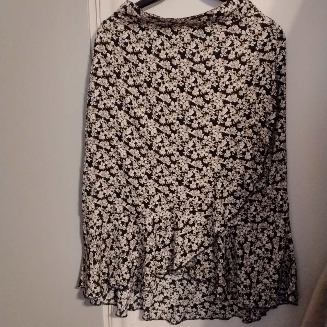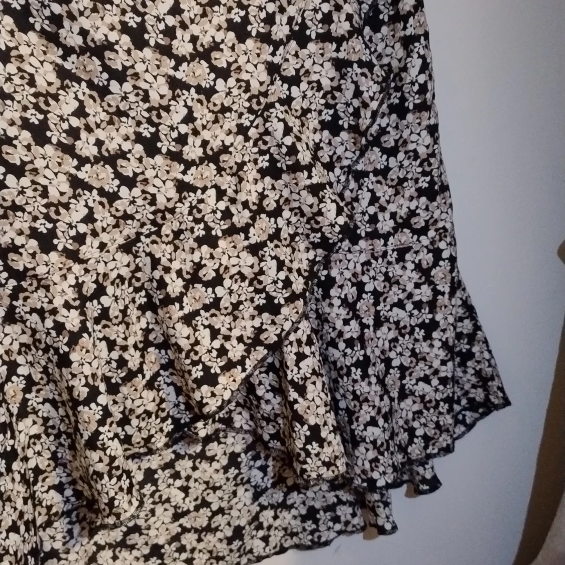 Snygg blommig kjol från lager 157 i svart och beiget med volangdetaljer. Perfekt för en trendig look. Kjolen har en omlott-design som ger en fin passform.