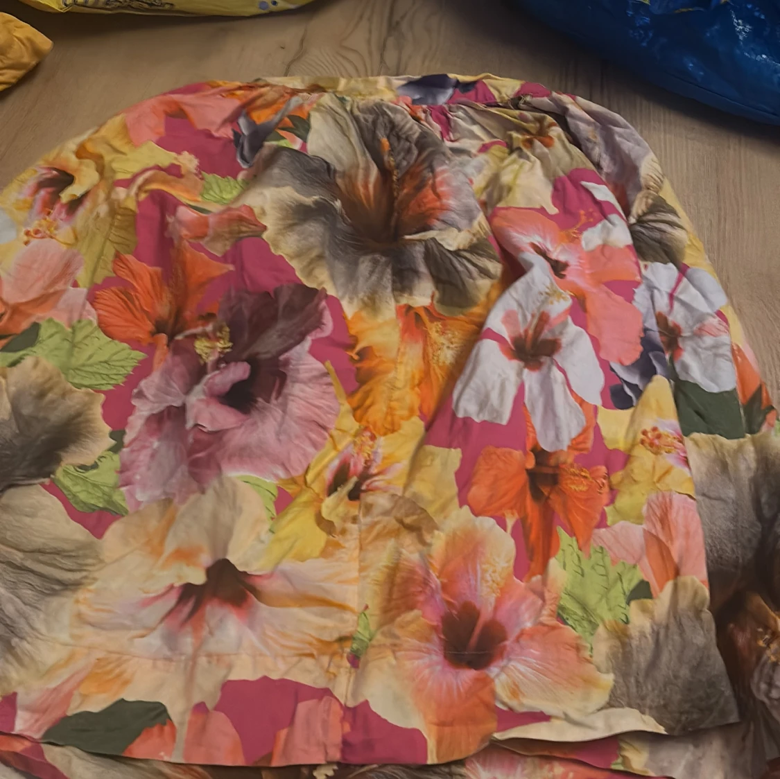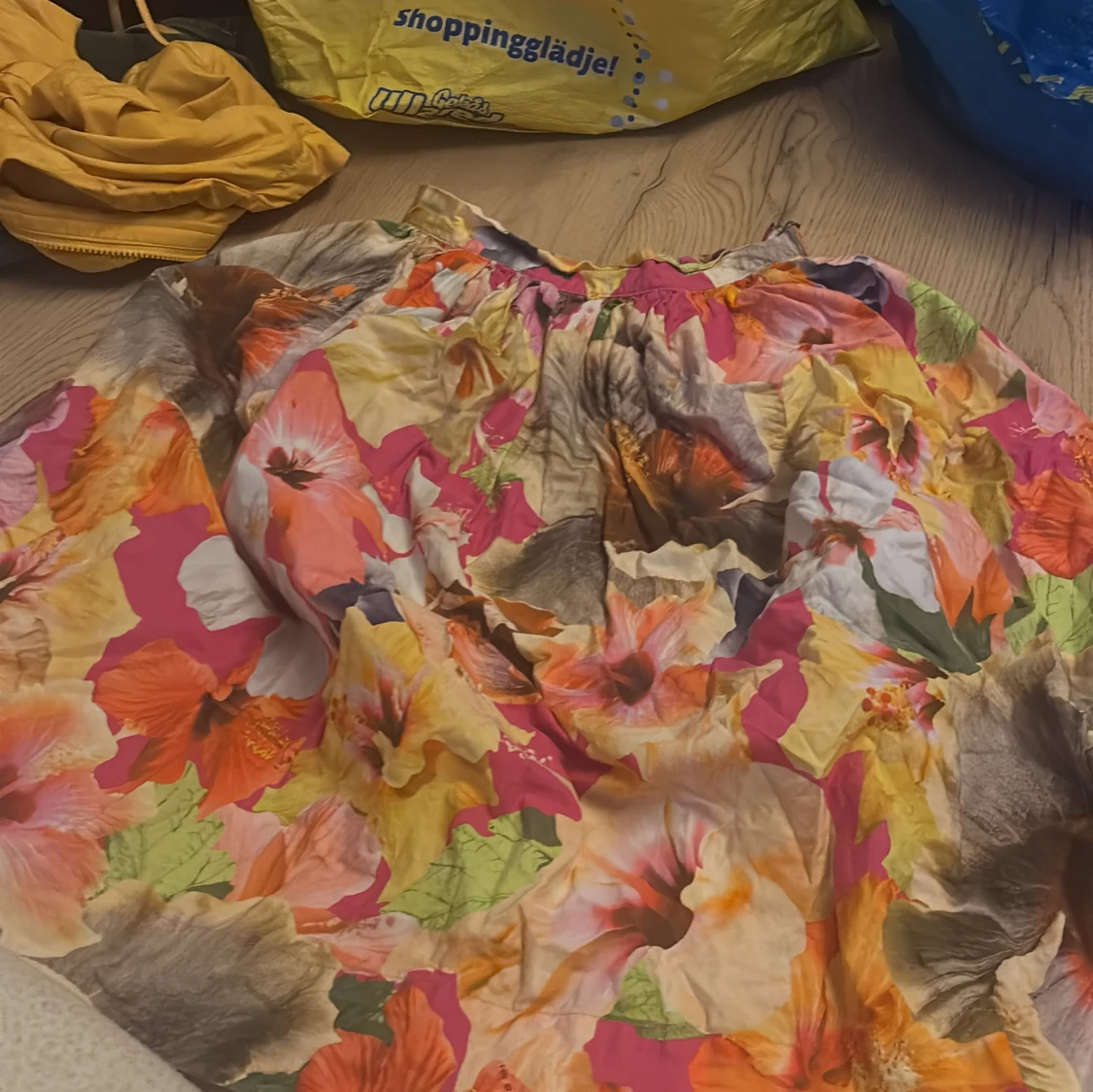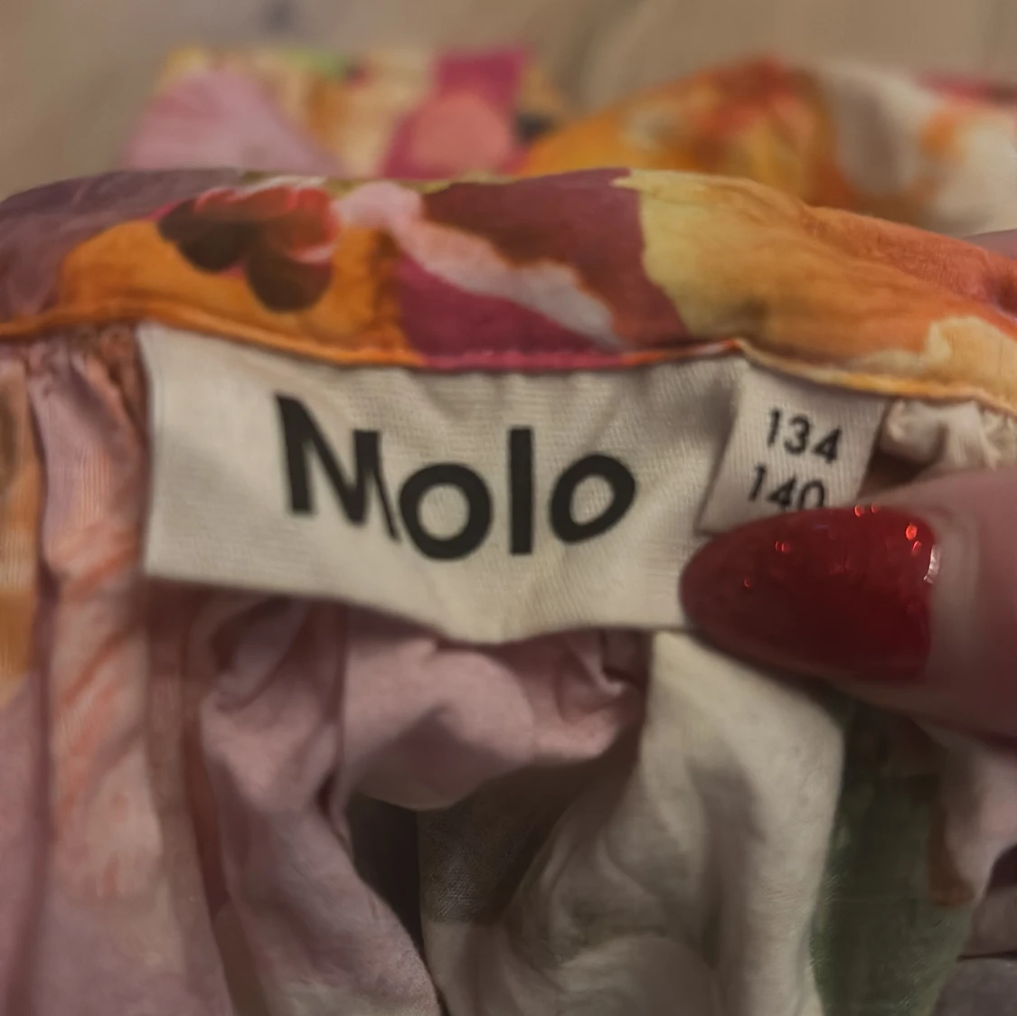 Färgglad blommig kjol från Molo i storlek 134/140. Kjolen har ett livfullt mönster med blommor i rosa, orange, gul och grön. Perfekt för att lysa upp garderoben!
