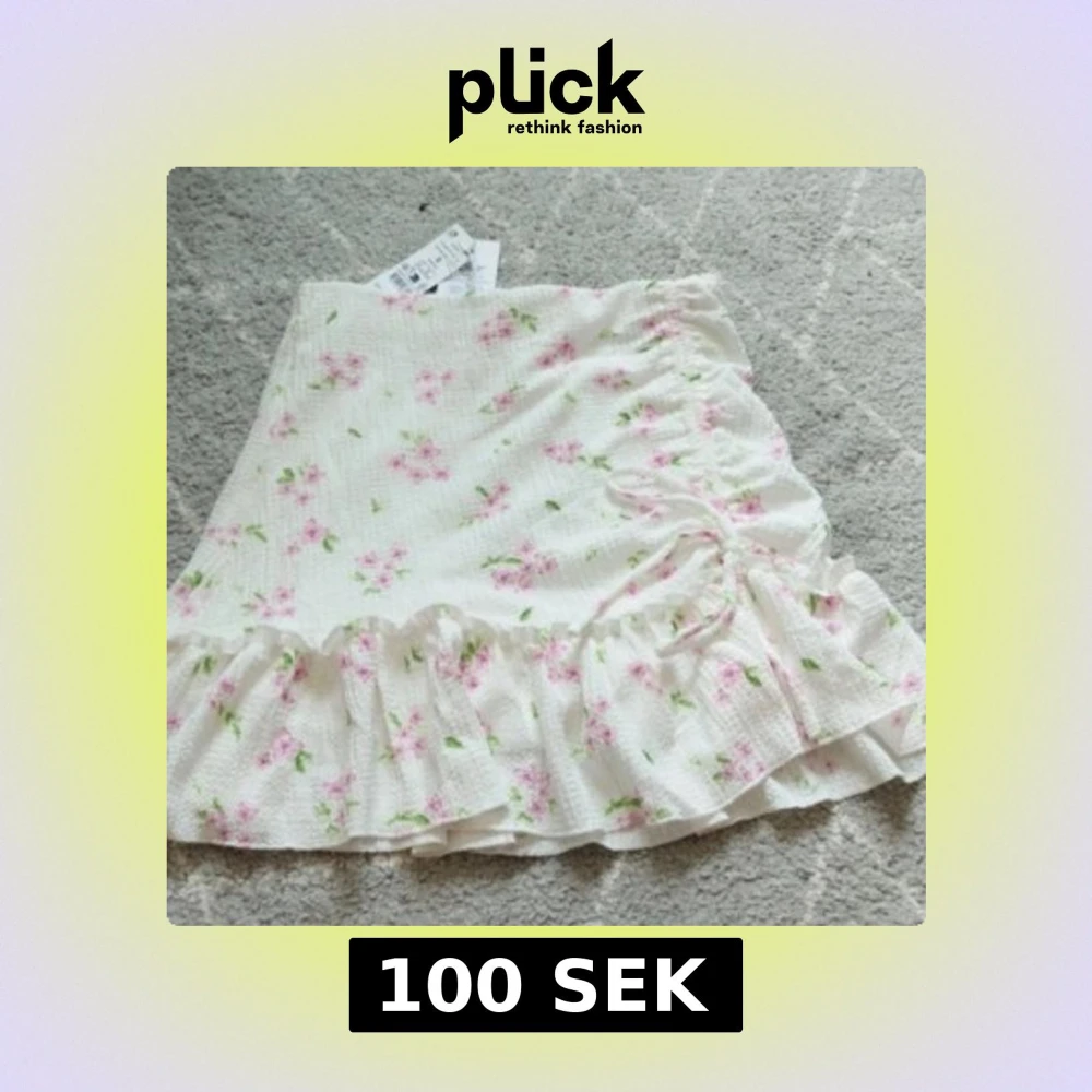 Charmig vit kjol med rosa blommönster från Gina Tricot. Kjolen har volangdetaljer och en omlott-design som ger en romantisk känsla. Perfekt för somriga dagar. Med prislapp kvar och aldrig använd. Storlek S.