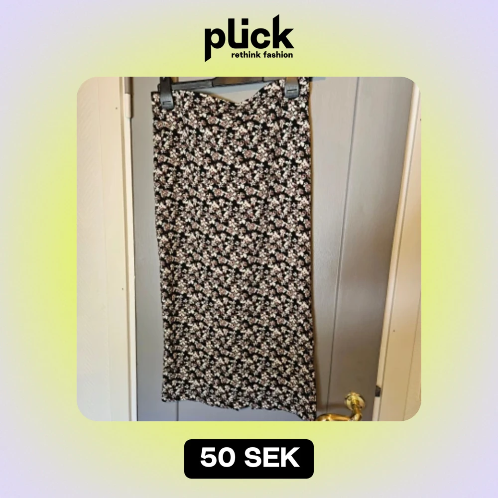 Blommig långkjol i svart med vita och bruna blommor. Normal passform. Den är i nyskick då den knappt använts. Storlek M, men sitter bra på mig som har XS/S