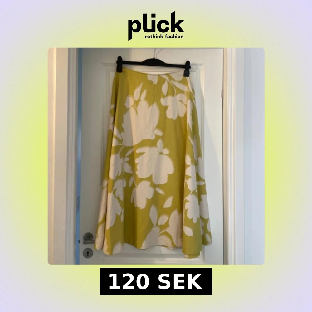 Säljer en flowy långkjol från Lindex i storlek 38. Kjolen har ett stort blommigt mönster i vitt och gult, perfekt för dig som gillar färg och vill sticka ut. Den har en vid och svepande passform som ger en riktigt skön känsla.