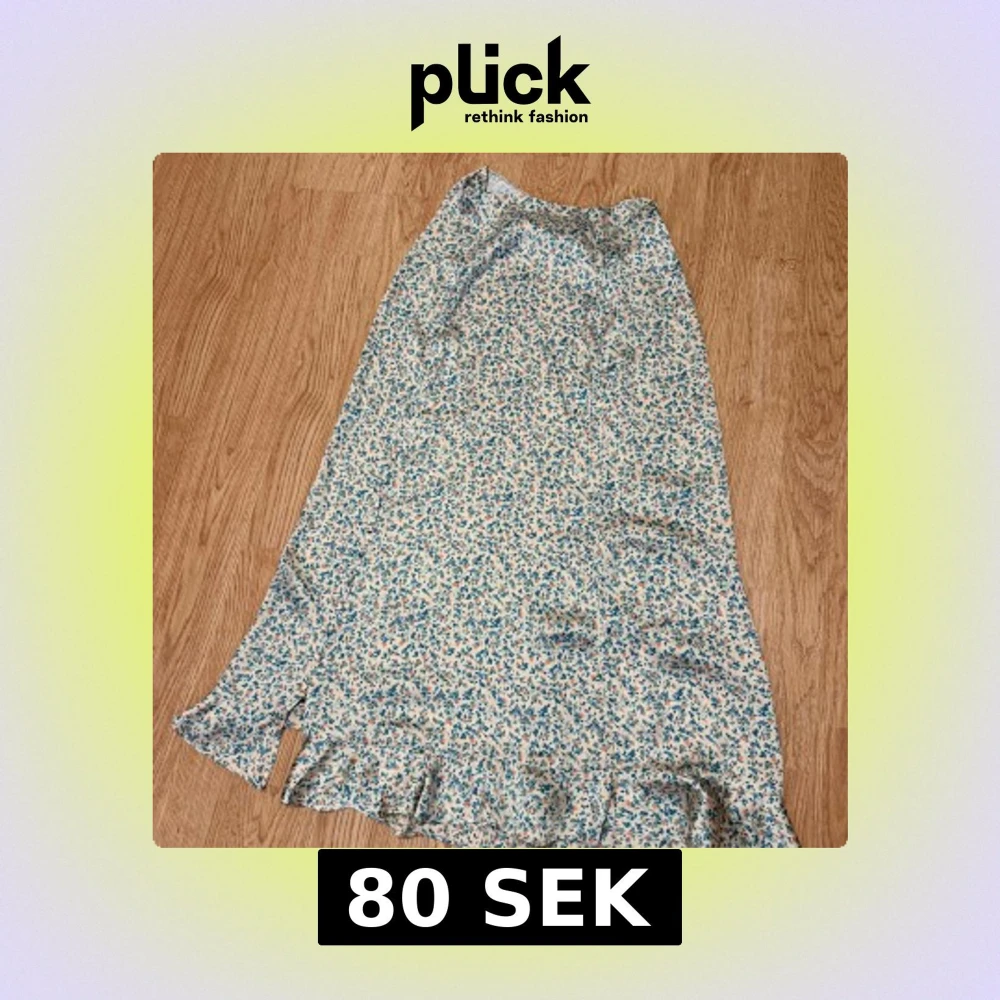 Supersöt satin långkjol från Zara i storlek XS med blommigt mönster i blått och orange på en ljus bakgrund. Kjolen har volangkant nedtill och dragkedja i sidan. Perfekt för dig som gillar romantisk och feminin stil.