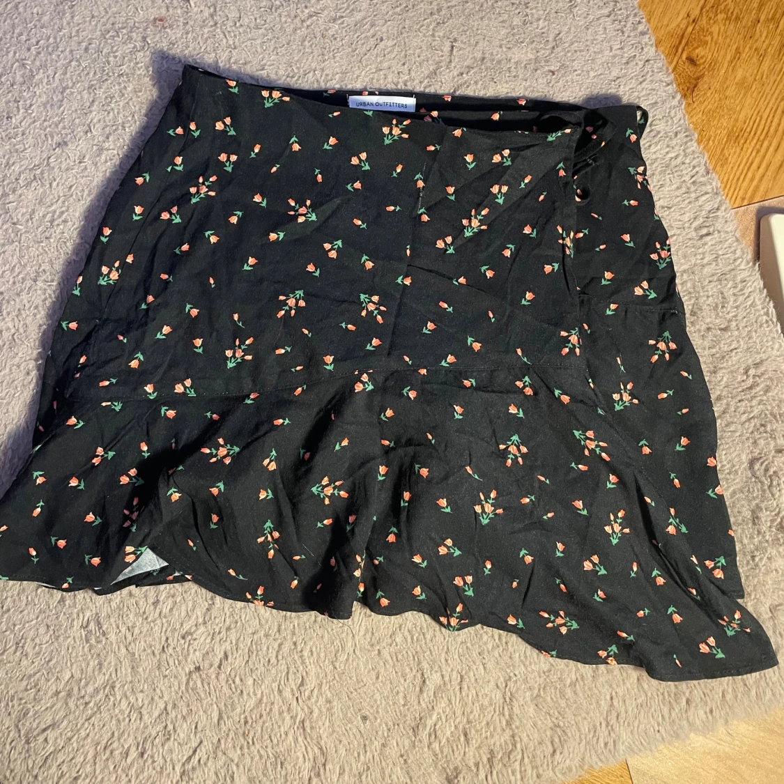 Supersöt svart kjol med små blommor från Urban Outfitters 🌷 Lätt och flowy tyg – perfekt till både vardag och sommaroutfits. Storlek: M men passar även S Fint skick 🖤 Passar perfekt med en enkel topp eller stickad tröja!