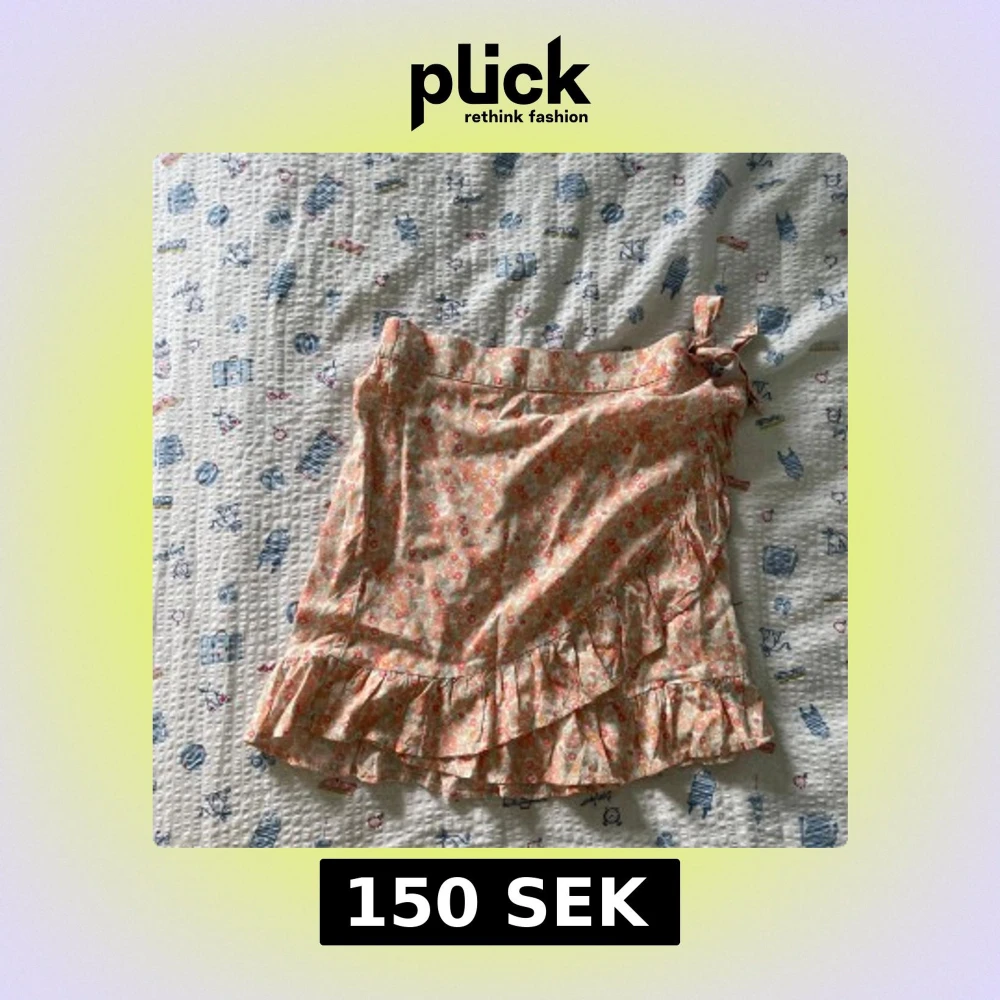 Supersöt kort omlottkjol med blommigt mönster i ljusa färger och volangkant. Kjolen har knyt i sidan och är perfekt för varma dagar. Lätt och luftig känsla, passar perfekt till sneakers eller sandaler.