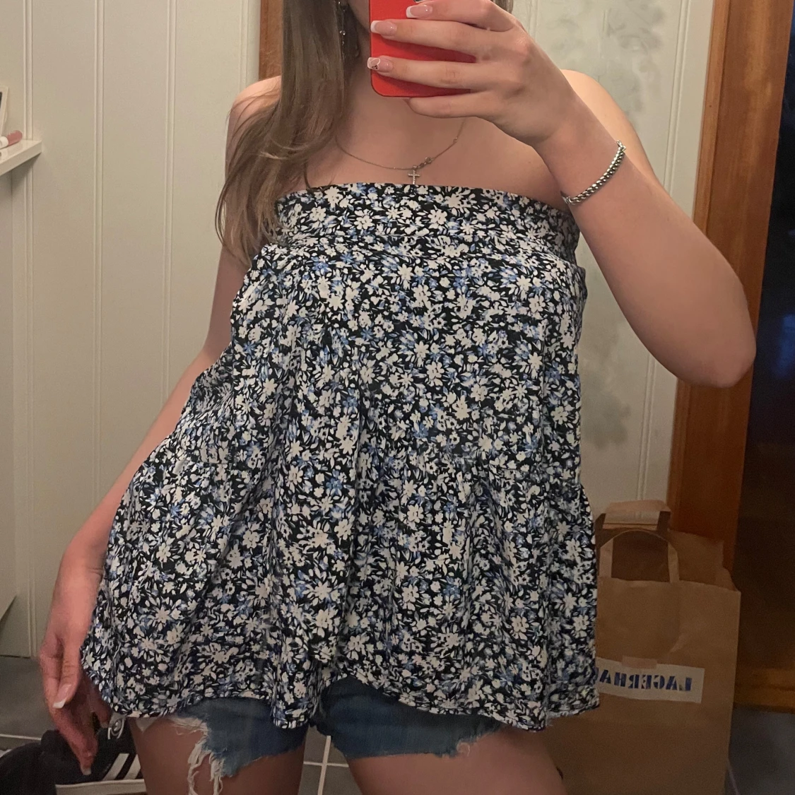 Supersöt blommig topp/kjol från Lindex i blått, vitt och svart. Superbra skick eftersom jag endast användt den 1-2 gånger. Går som sagt att använda som både kjol och topp!