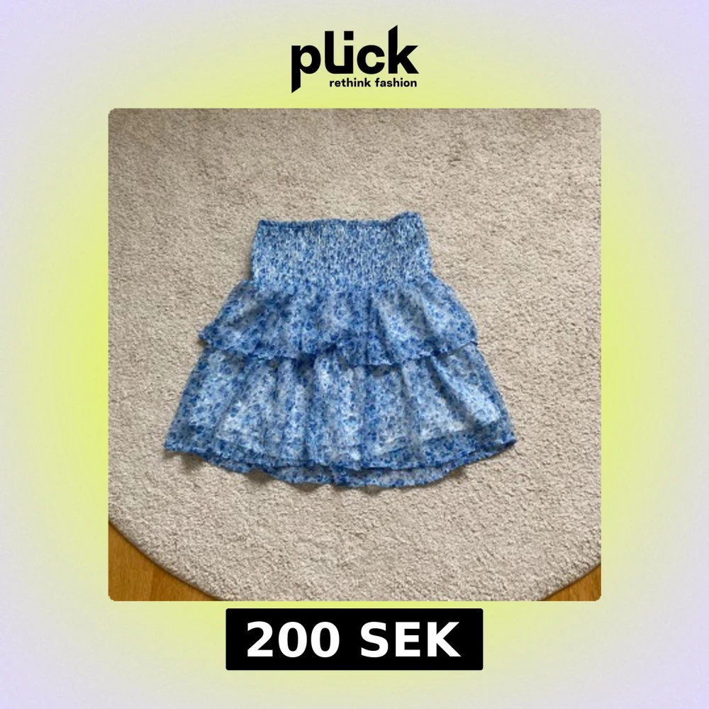 Supersöt blå kortkjol från Vero Moda med blommigt mönster och volanger. Kjolen har smock med mjuk resår i midjan. Använd fåtalet gånger och är i mycket bra skick.
