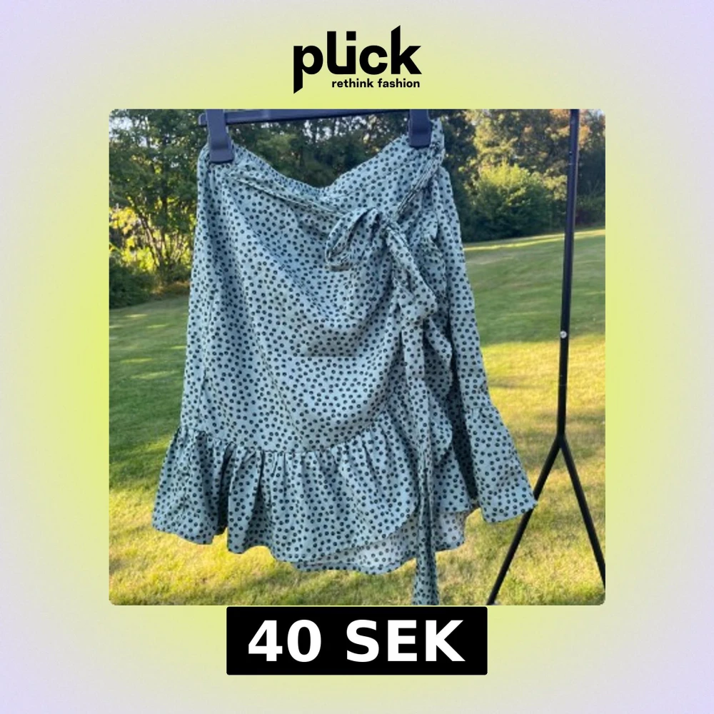 Supersöt grön kortkjol från ONLY med små svarta blommor, volangkant och omlottknytning i midjan. Kjolen har elastisk midja och är perfekt för dig som gillar en feminin och trendig look. Materialet är mjukt och lätt, perfekt för varma dagar.