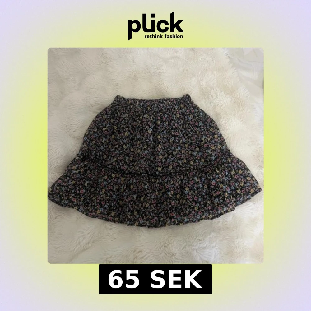 Supersöt kort kjol från Pull&Bear med blommigt mönster i pastellfärger på svart botten. Kjolen har volangkant och resår i midjan för en bekväm passform. Perfekt för dig som gillar en feminin och lekfull stil.