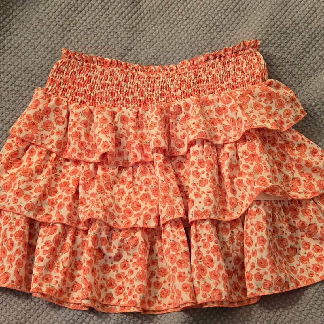 Supersöt kort volangkjol med blommigt mönster i rosa och vitt. Köpt här på plick Kjolen har flera lager volanger och smock i midjan för en bekväm passform. Perfekt för sommaren!! Skulle säga stl M! Skriv om du är intresserad eller har några frågor! Pris kan diskuteras!🫶🩷☀️🌸