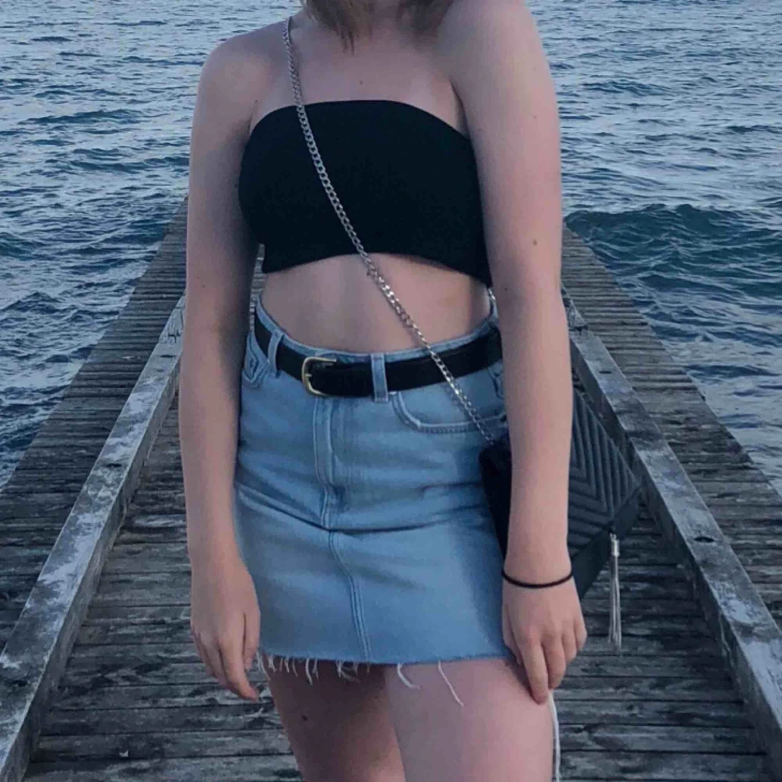 Superfin jeanskjol från bikbok i ljusblå tvätt, endast använd ett fåtal gånger och i jättefint skick. Säljes då den tyvärr inte passar längre.