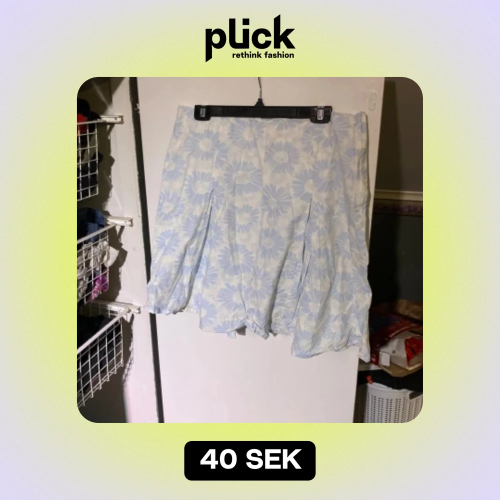 Vit kjol med blå blommor, behöver strykas innan användning