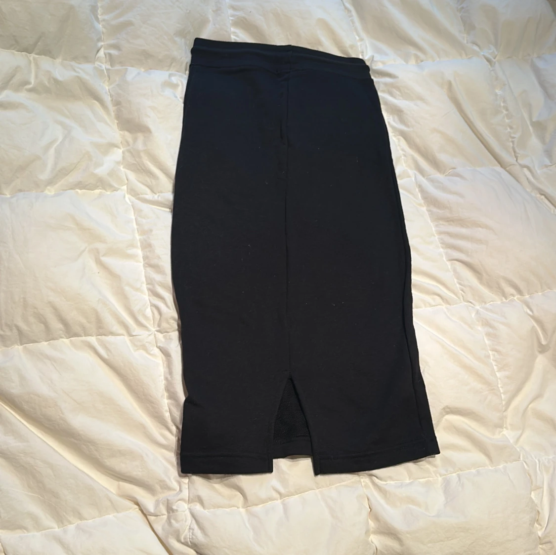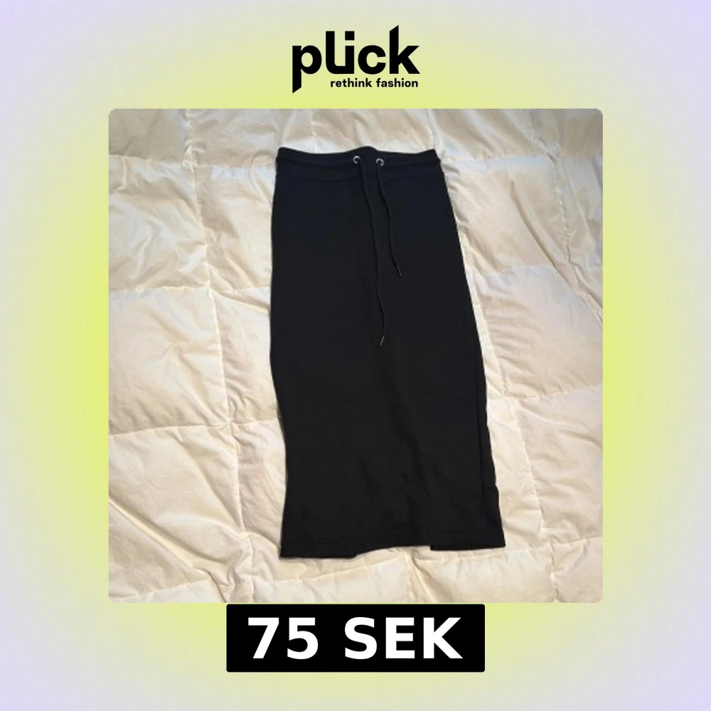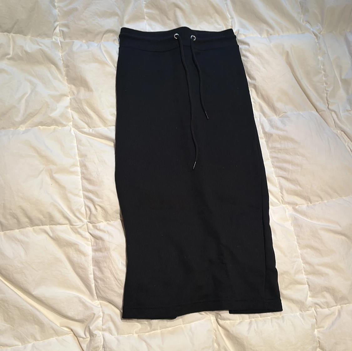 Säljer en svart längre kjol (3/4) från Boohoo. Kjolen har en slits baktill och ett knytband i midjan för justerbar passform.
